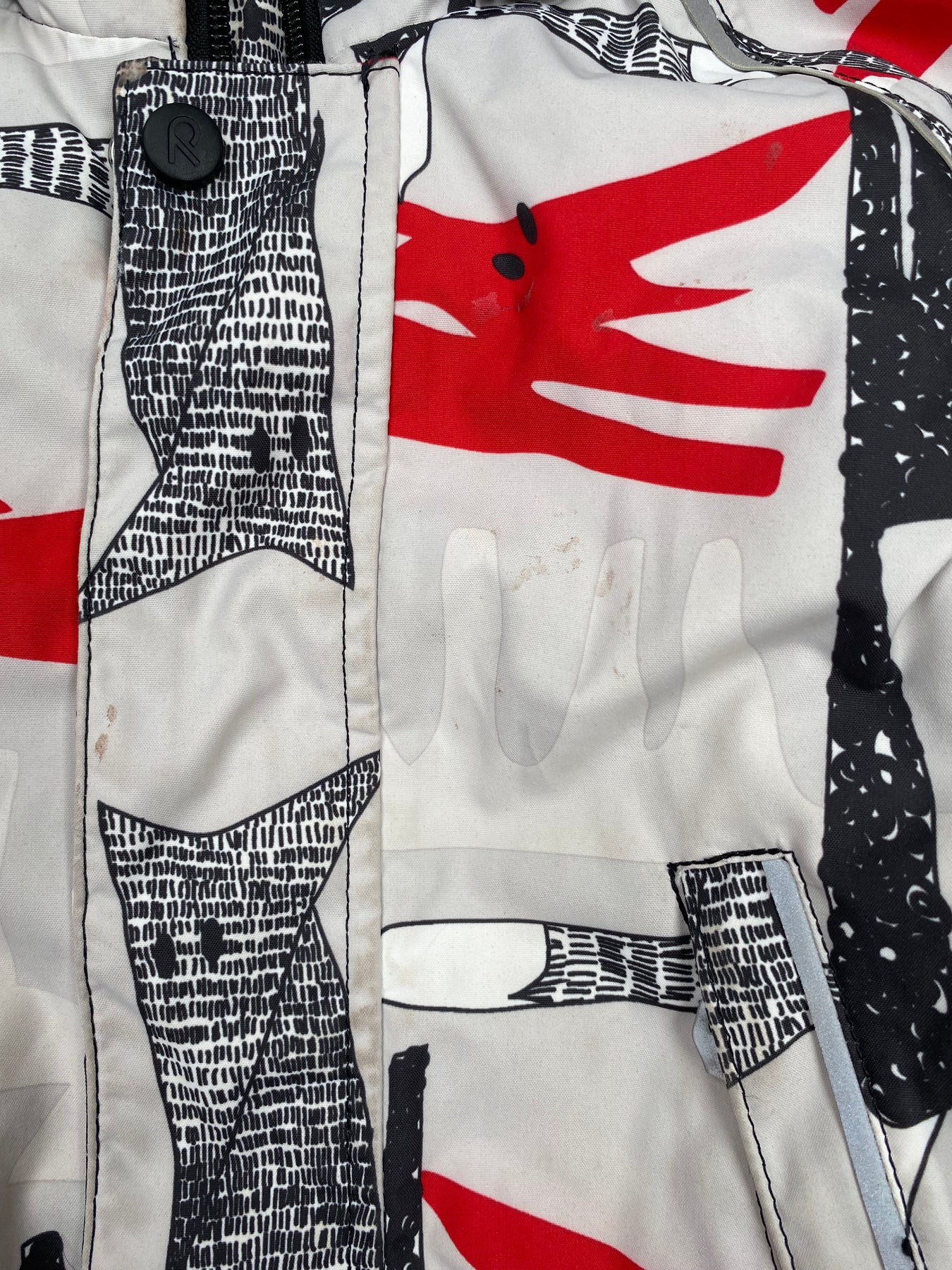 Reima winter jacket is made from a durable technical material that's originally water- and windproof as well as breathable. It also repels dirt, so it's easy to take care of. The seams are sealed to stop snow and rain showers from preventing outdoor fun! Lined with smooth polyester, this children's jacket is easy to pull on and feels comfortable. Attached with snap buttons, the hood comes off easily if it gets caught on anything. Stretchy cuffs, two zip pockets at the front and reflective details complete this cute kids' coat.