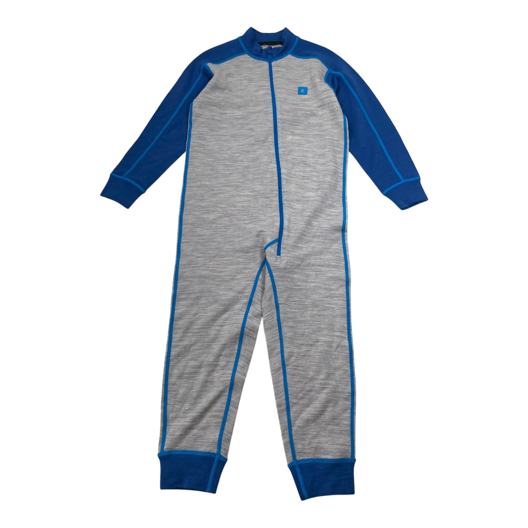 Reima wool jumpsuit is warm and breathable. It's great mid-layer underneath outerwear. Interior is brushed soft, so it feels super nice against skin. Ribbed cuffs, a full-length zipper that makes putting the piece on easy and a chin guard that protects delicate necks from the zip. For added comfort, all the seams have a thin, flat construction that doesn't chafe.