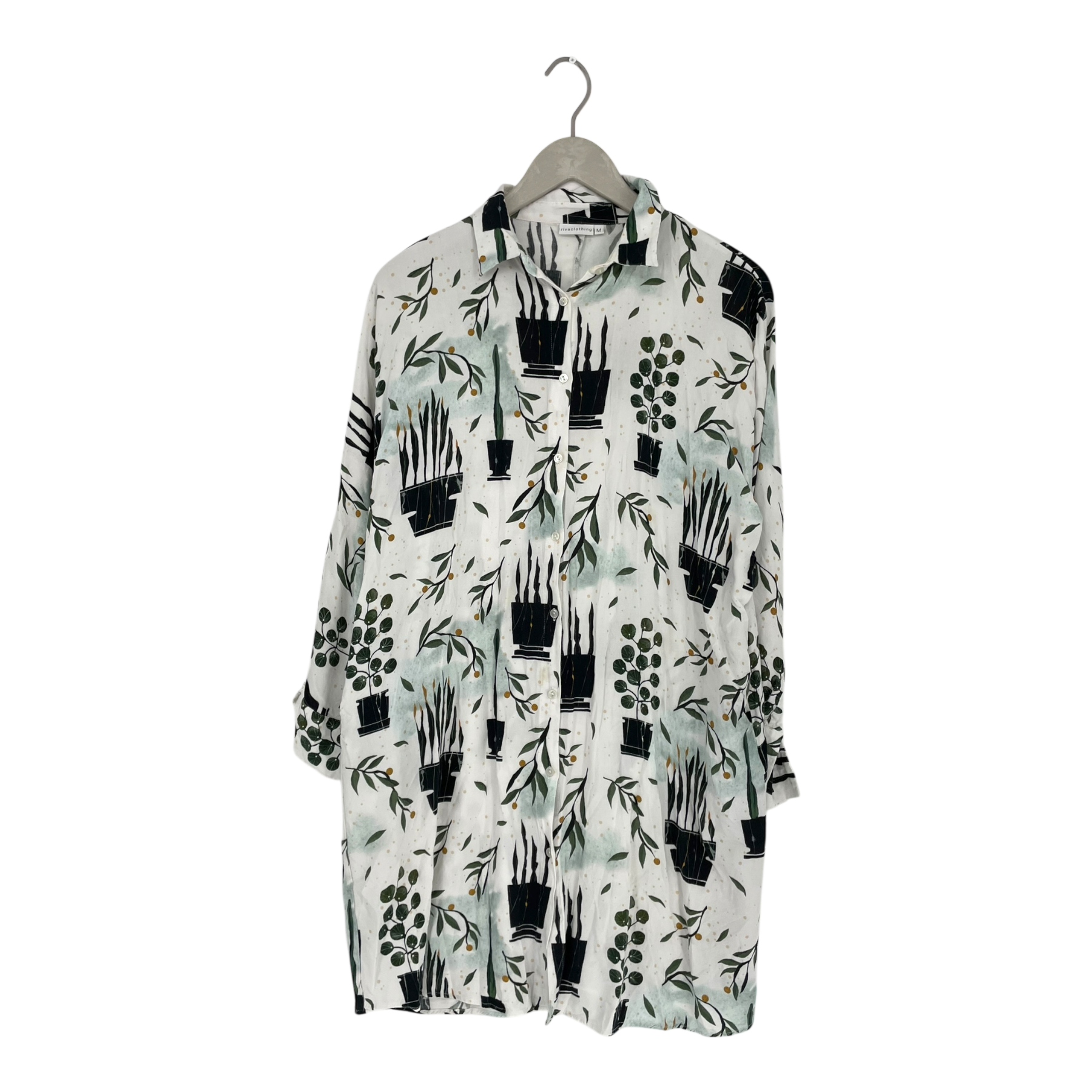 Riva Clothing buttoned dress or tunic in the Kintsugi print with pockets.