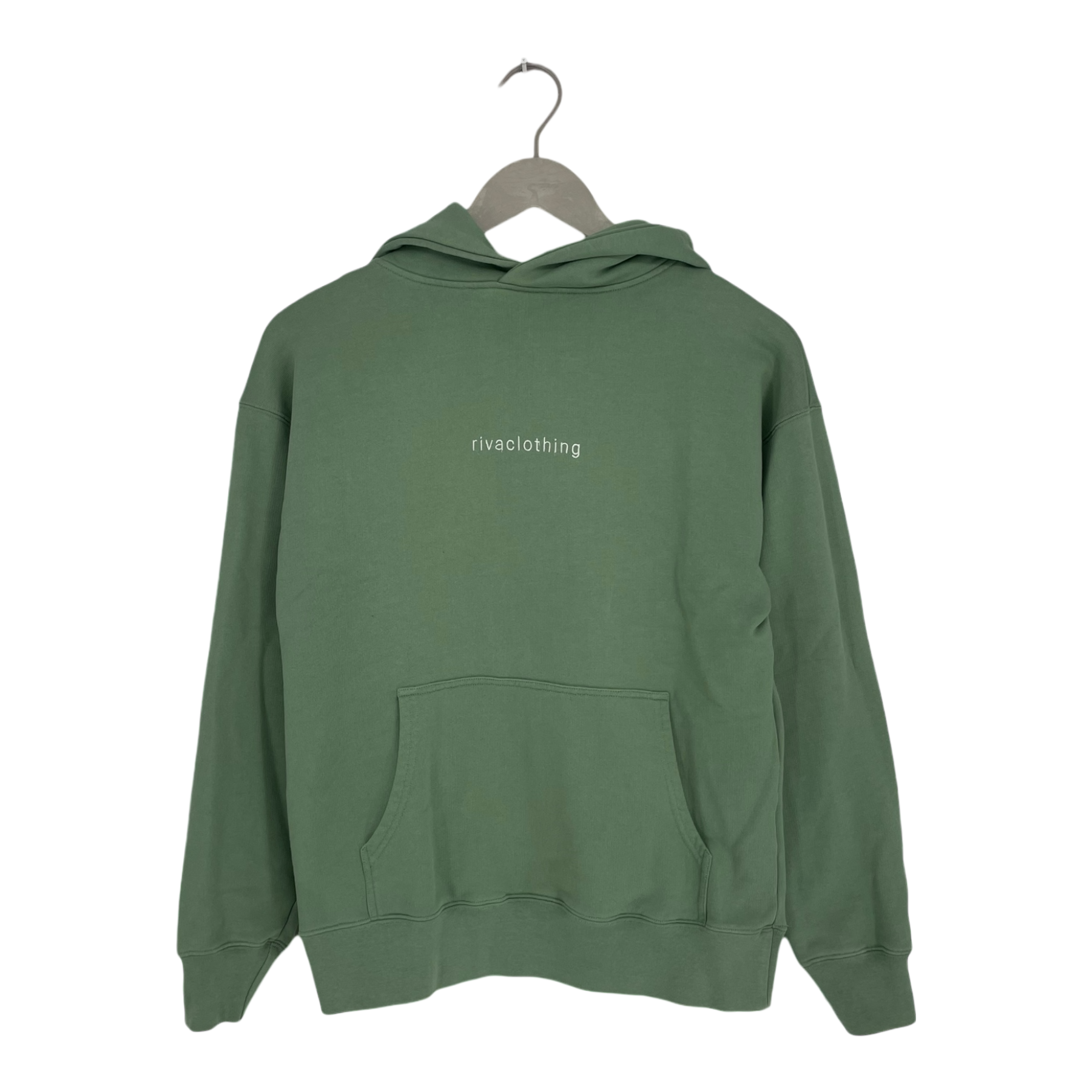 Riva Clothing pullover hoodie with an embroidered Riva Clothing logo and pouch pocket on front.