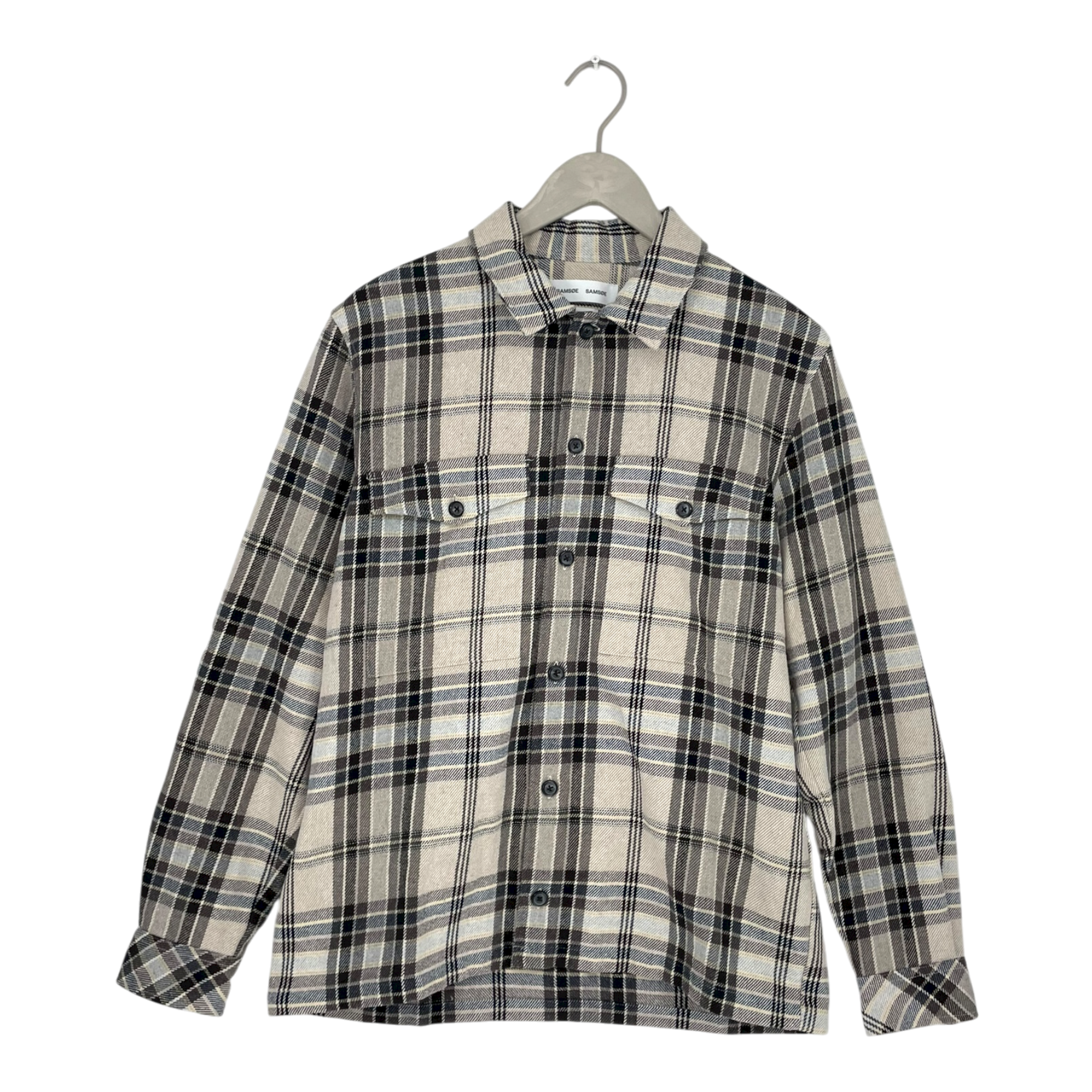 Samsøe Samsøe flannel button shirt in brown. two pockets on chest.
