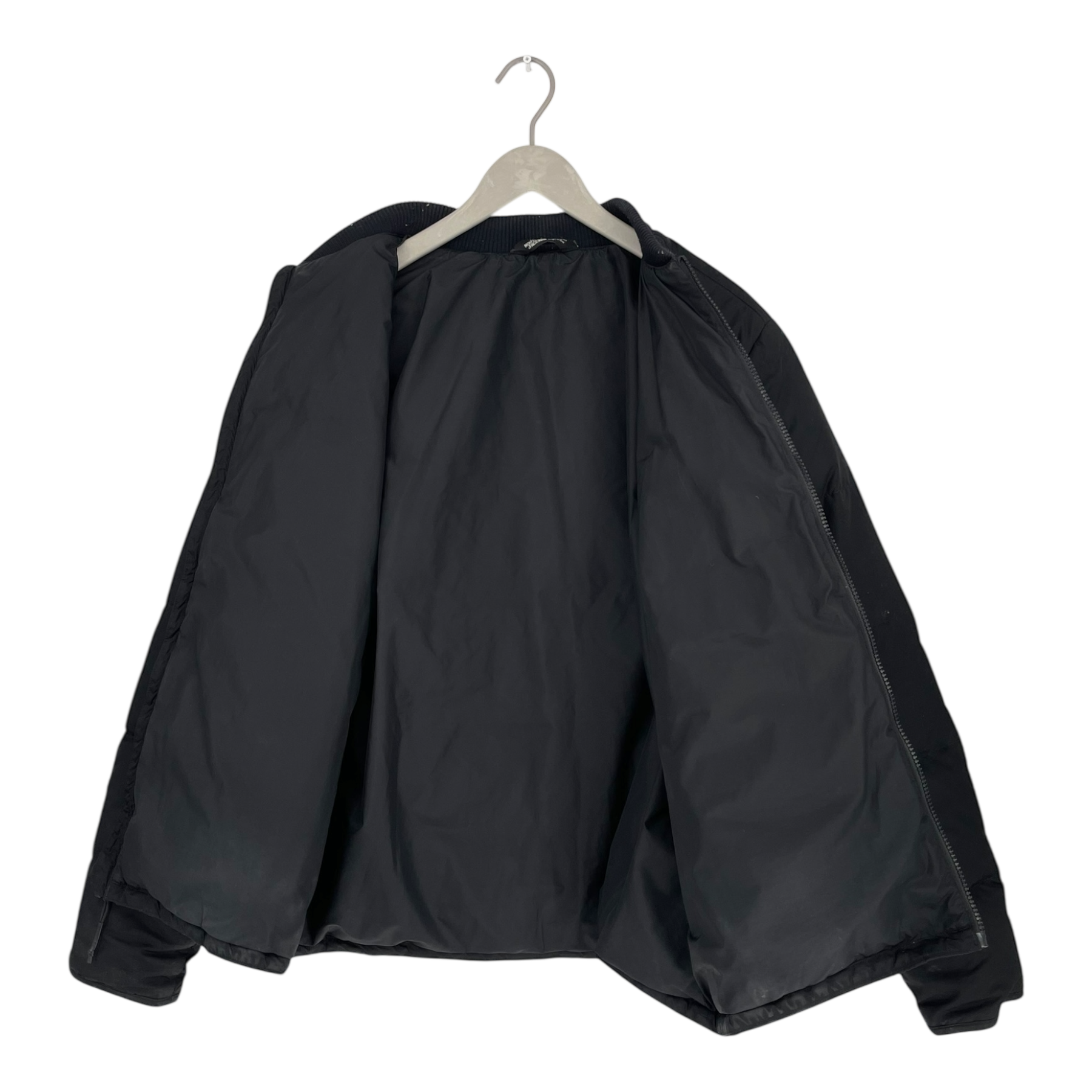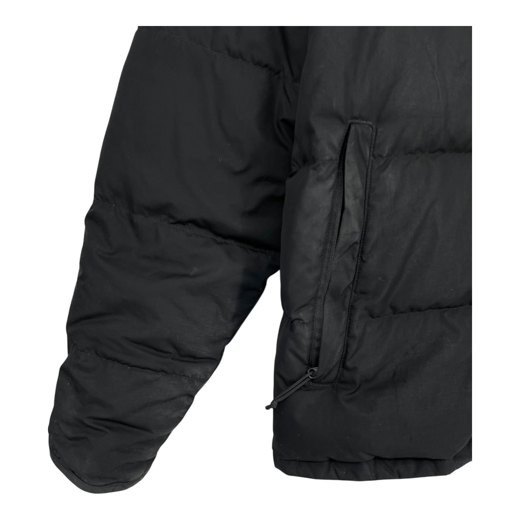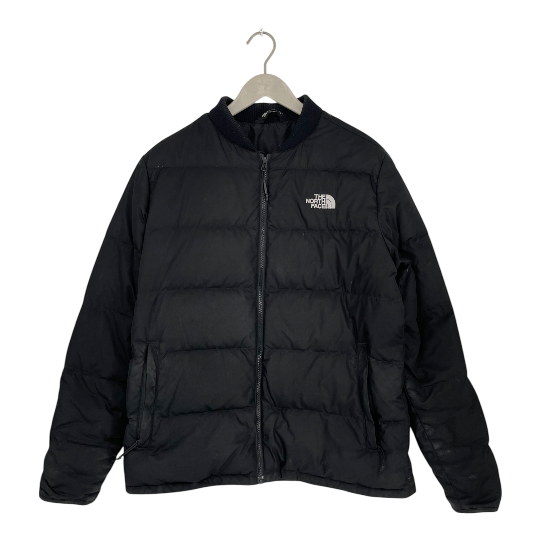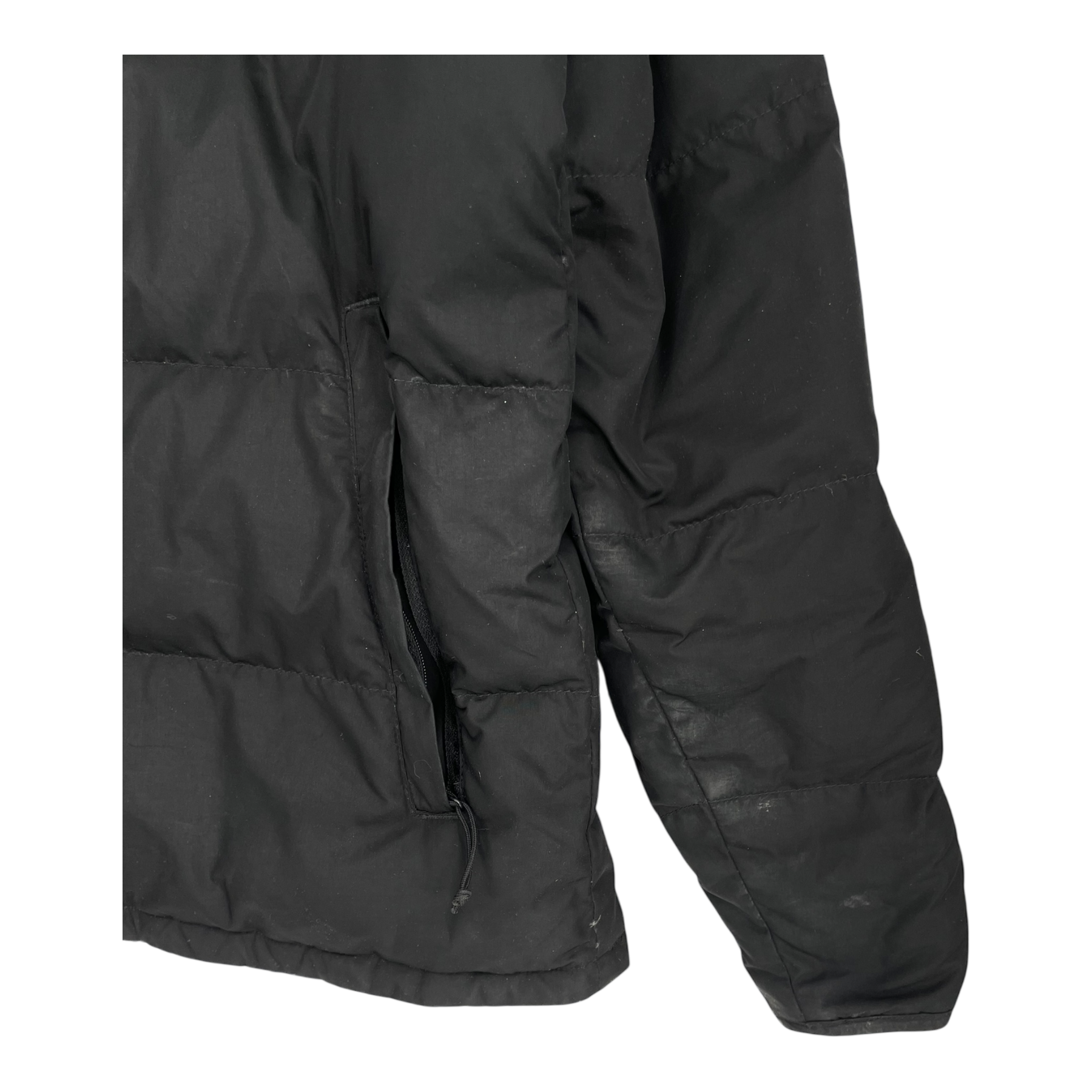 The North Face puffer jacket. Zippered pockets on the sides. Some of the down fillin has come out.