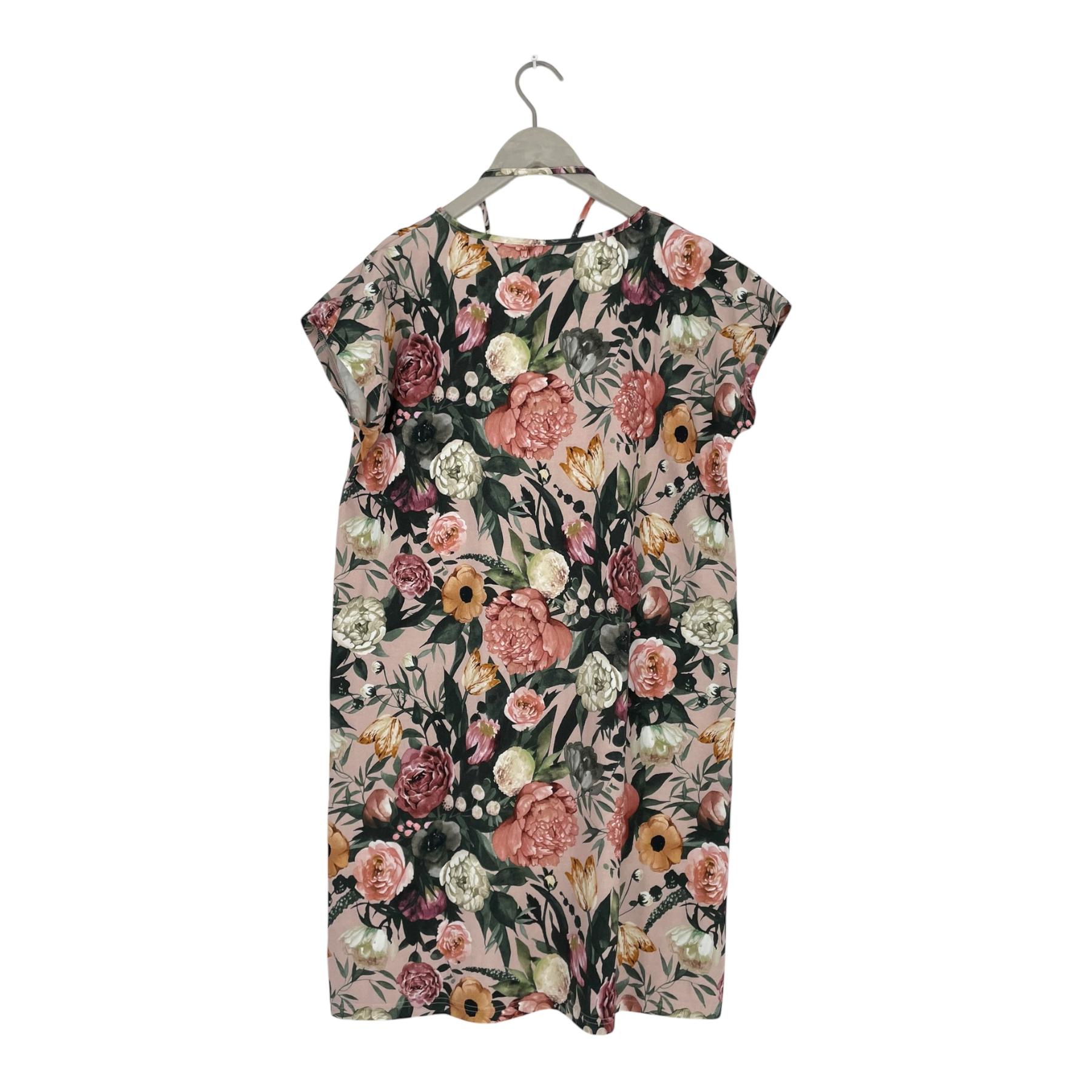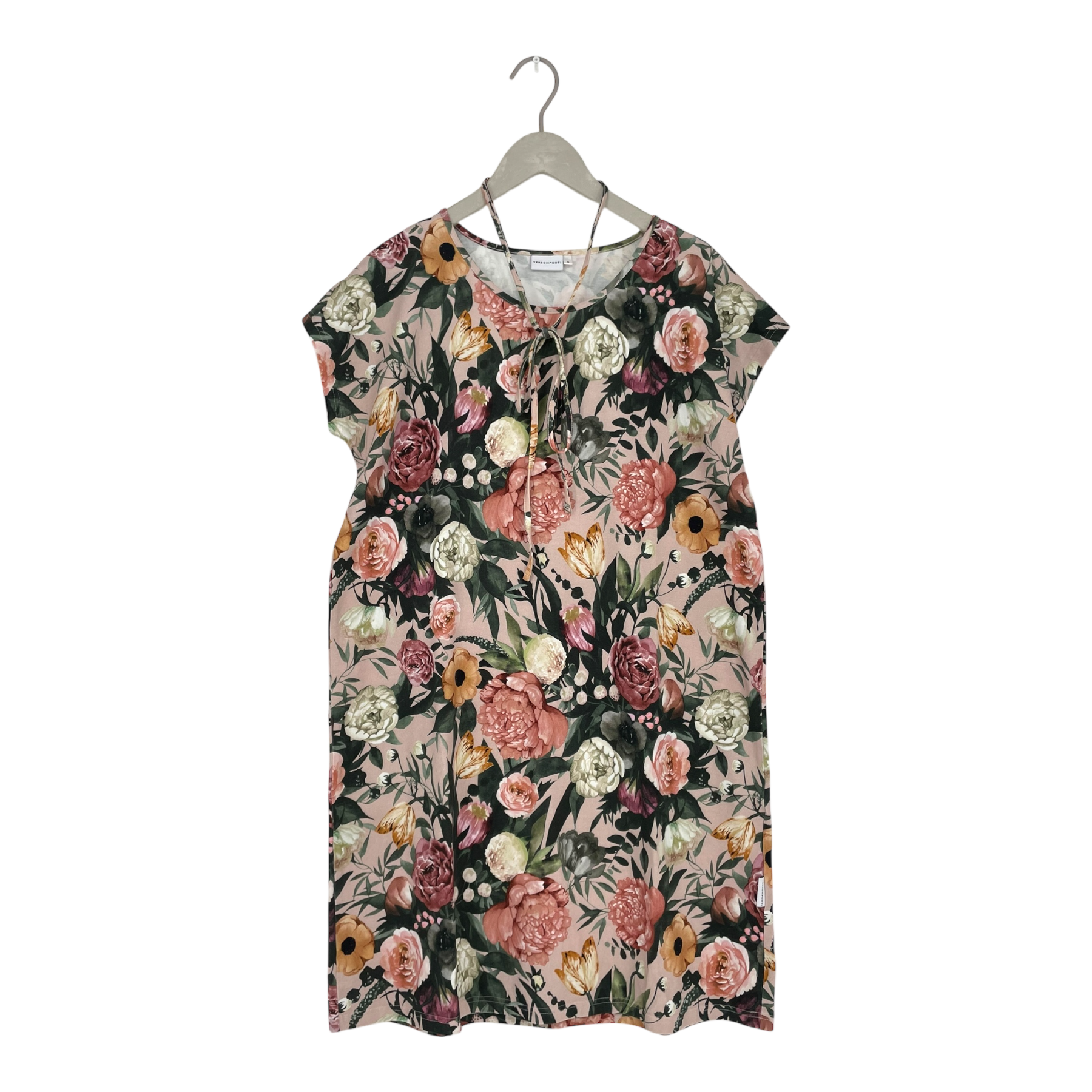 Versonpuoti t-shirt tunic in flower print. Straight hem and comes with a narrow belt.