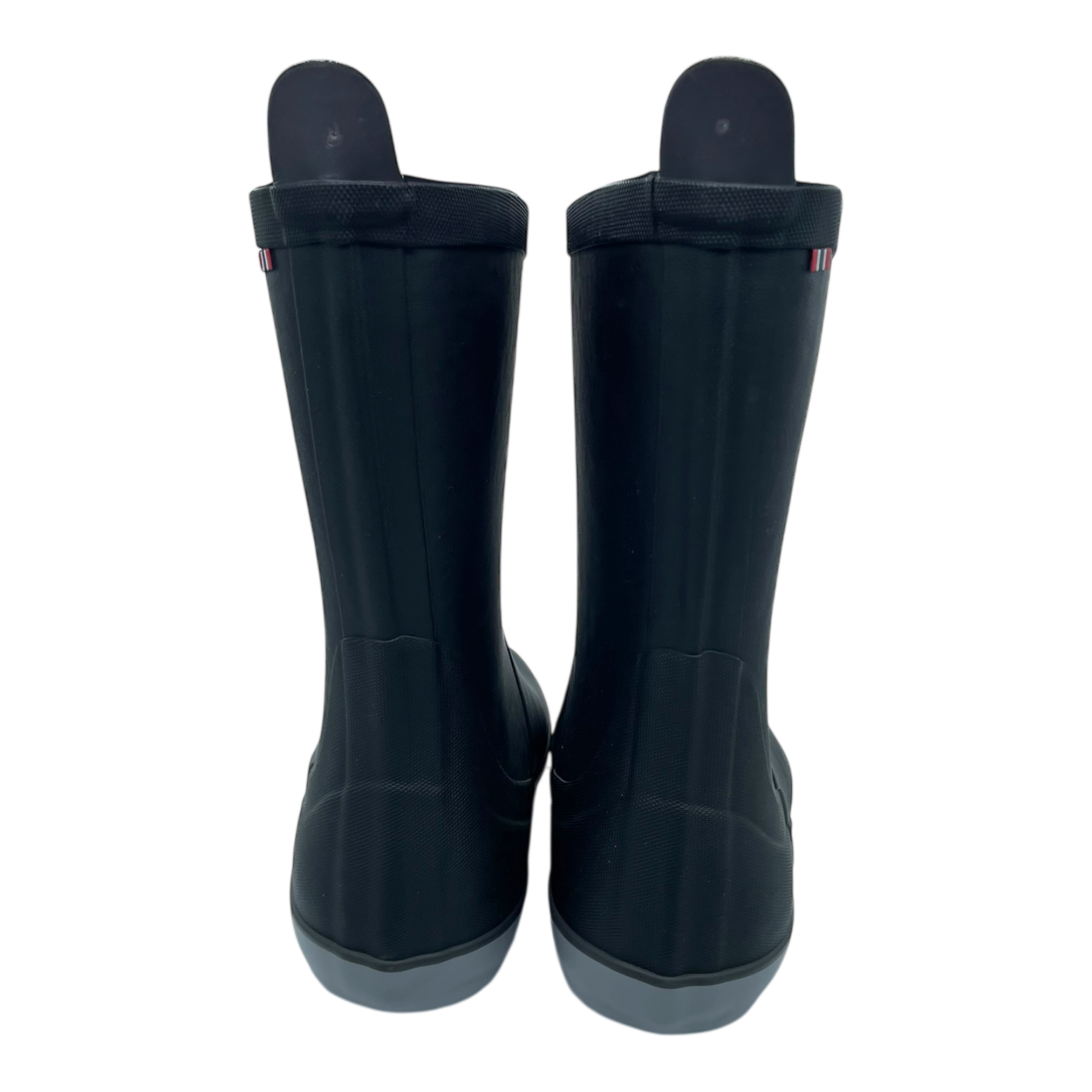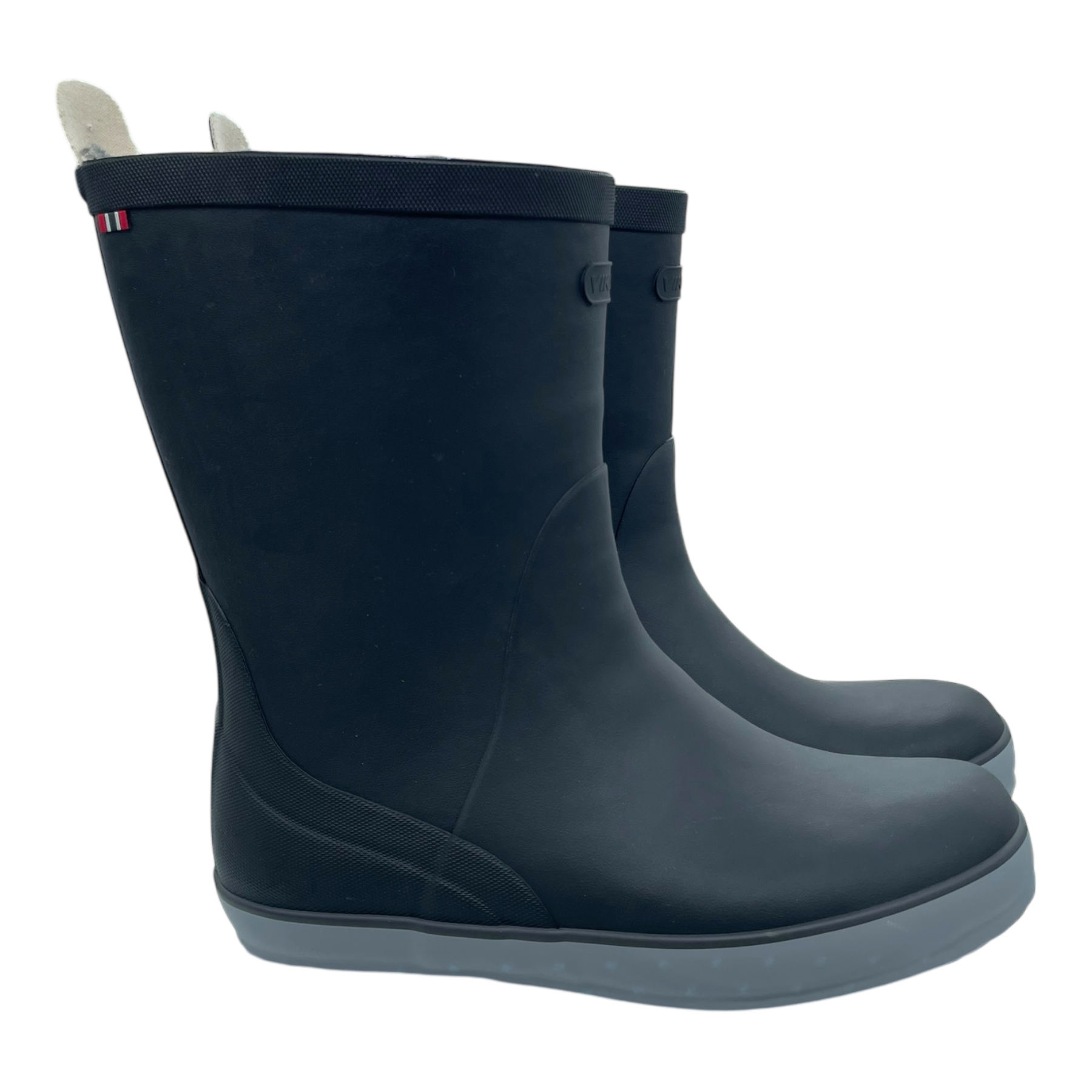 Viking winter rubber boot features an adjustable buckle on the shaft that serves as a stylish design detail while also providing a truly functional fit adjustment. The boot is lined with a warm winter lining to keep feet comfortable in cold conditions. The boots are black in color, complemented by light grey details that add a classic and refined look.