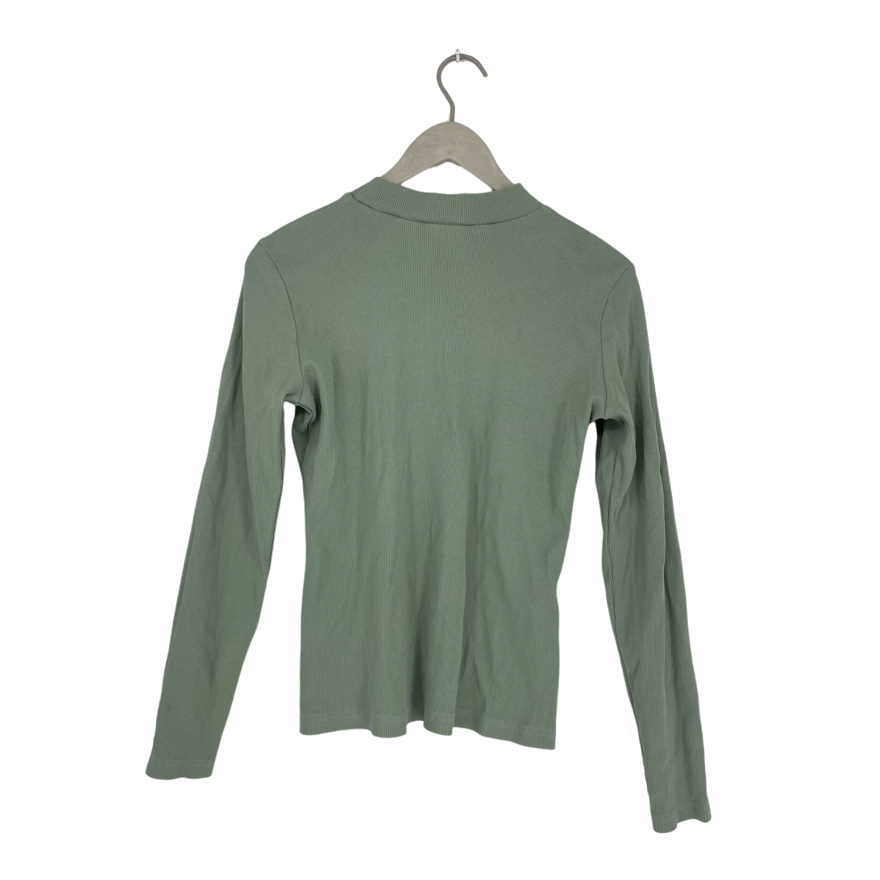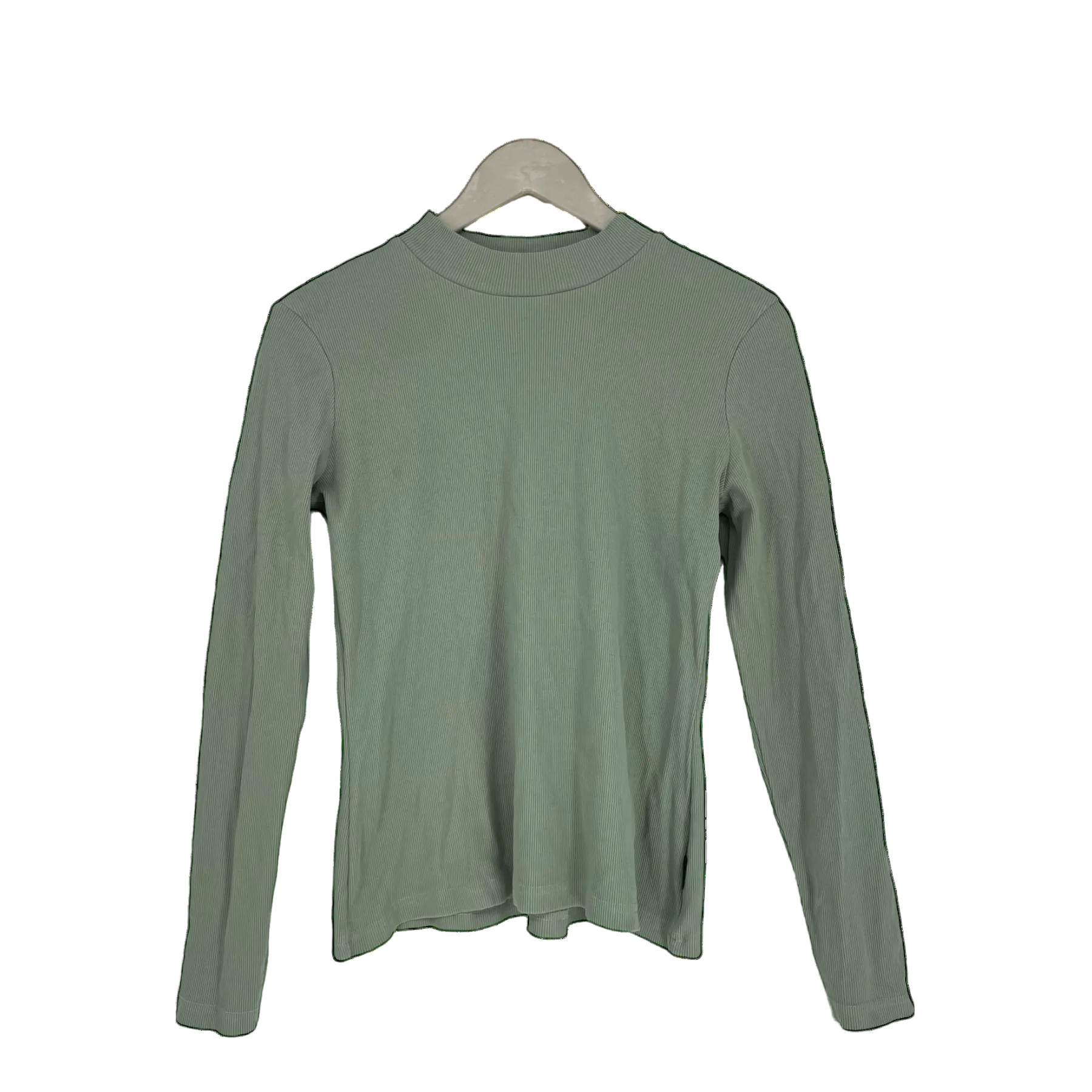 Aarrelabel women's long sleeve rib shirt with mock neck.