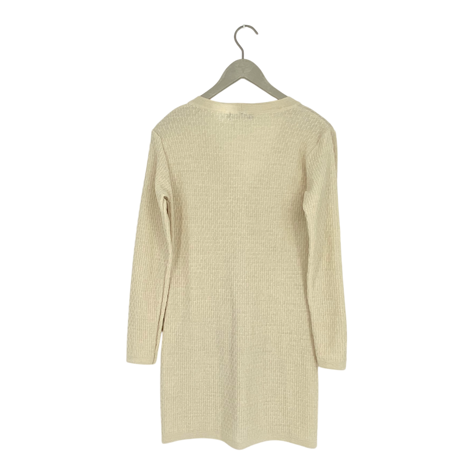 Alpa long sleeve cardigan with metal button closure and two pockets on the front. The sleeves are quite narrow and the fit of the cardigan is slim, but the fabric has some give.