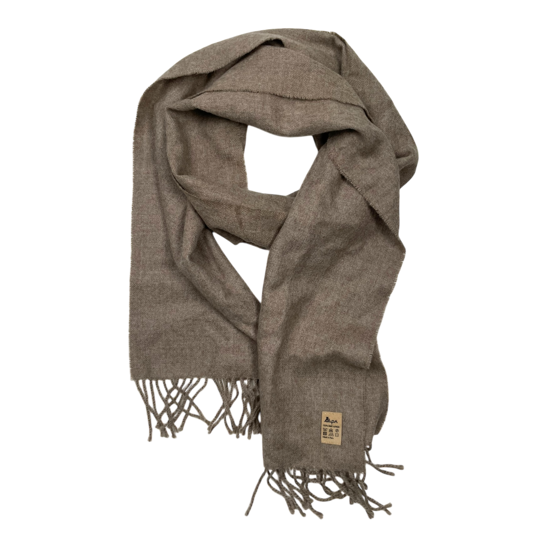 Alpa woven alpaca wool scarf. The scarf offers a luxurious, plush, warm, and soft feel.