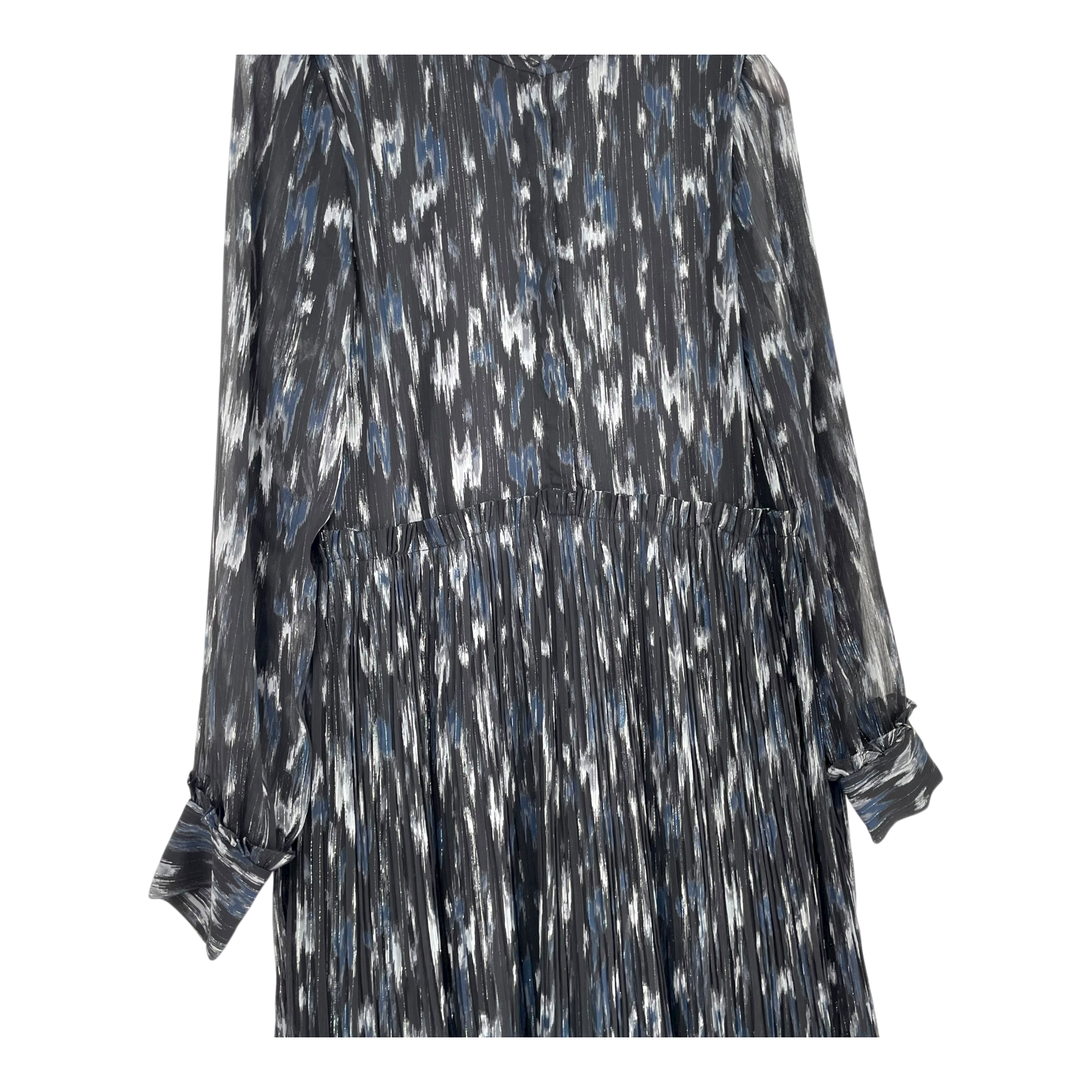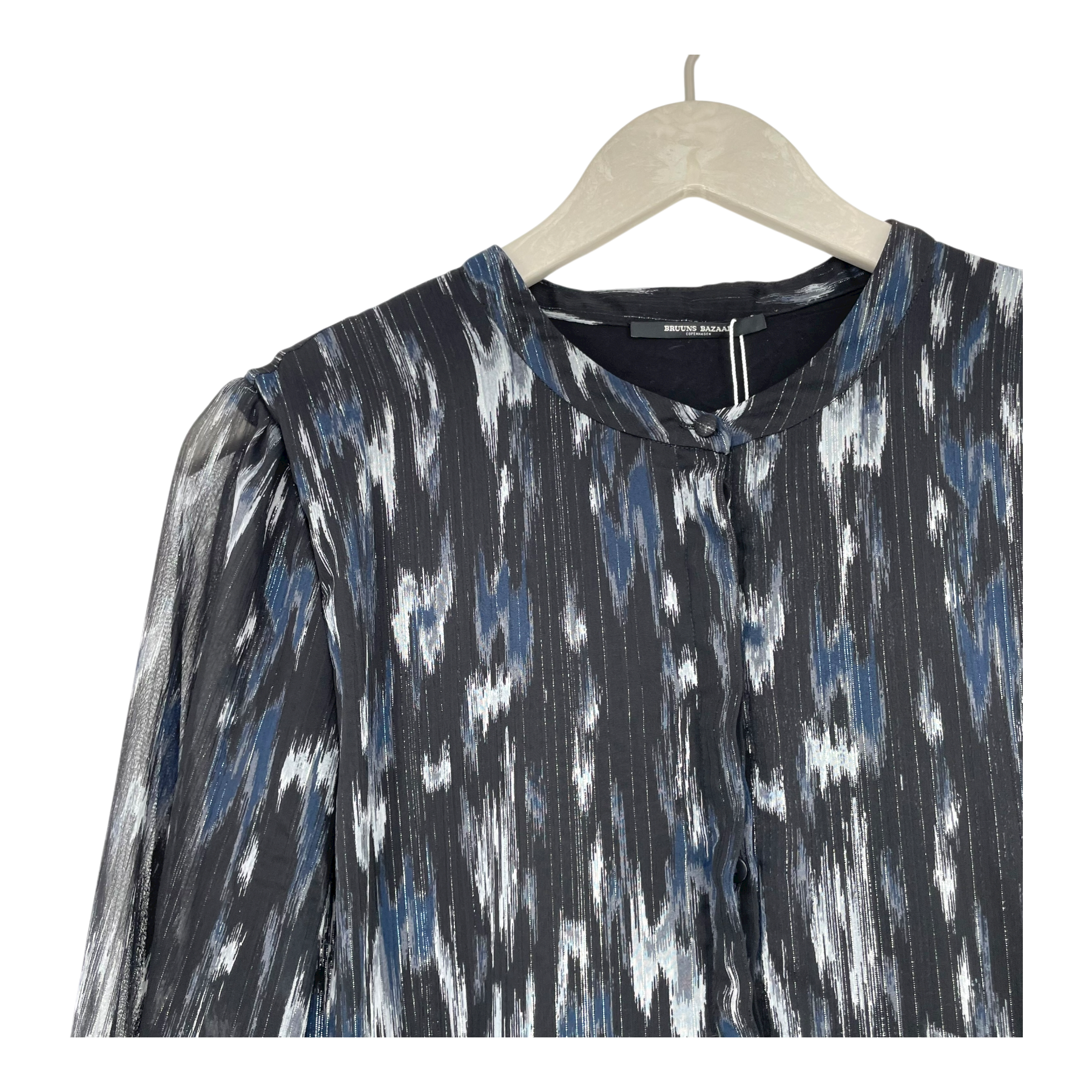 Bruuns Bazaar Blur Miley dress is a long sleeve with sheer sleeve parts. There is 1/4 button closure in the front.