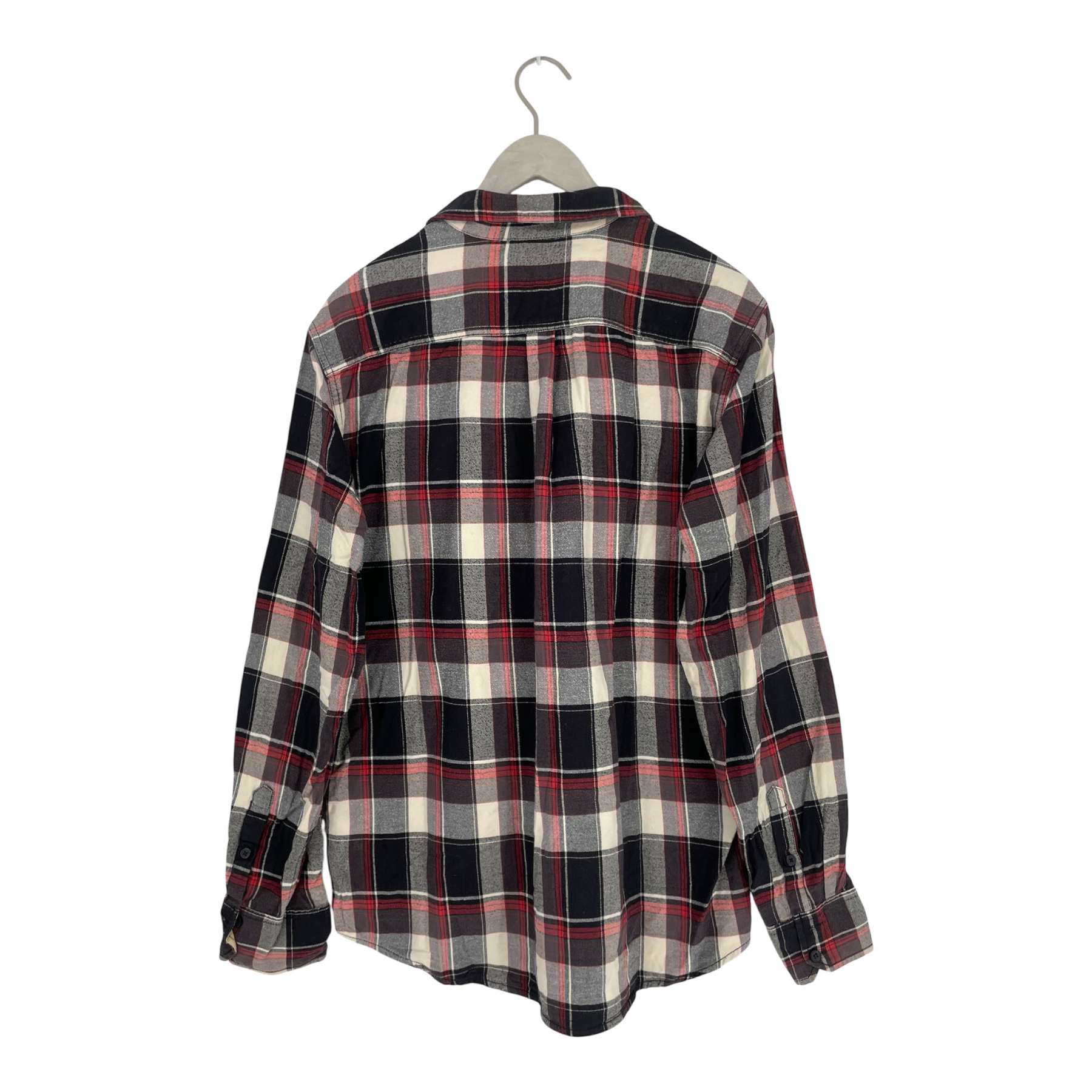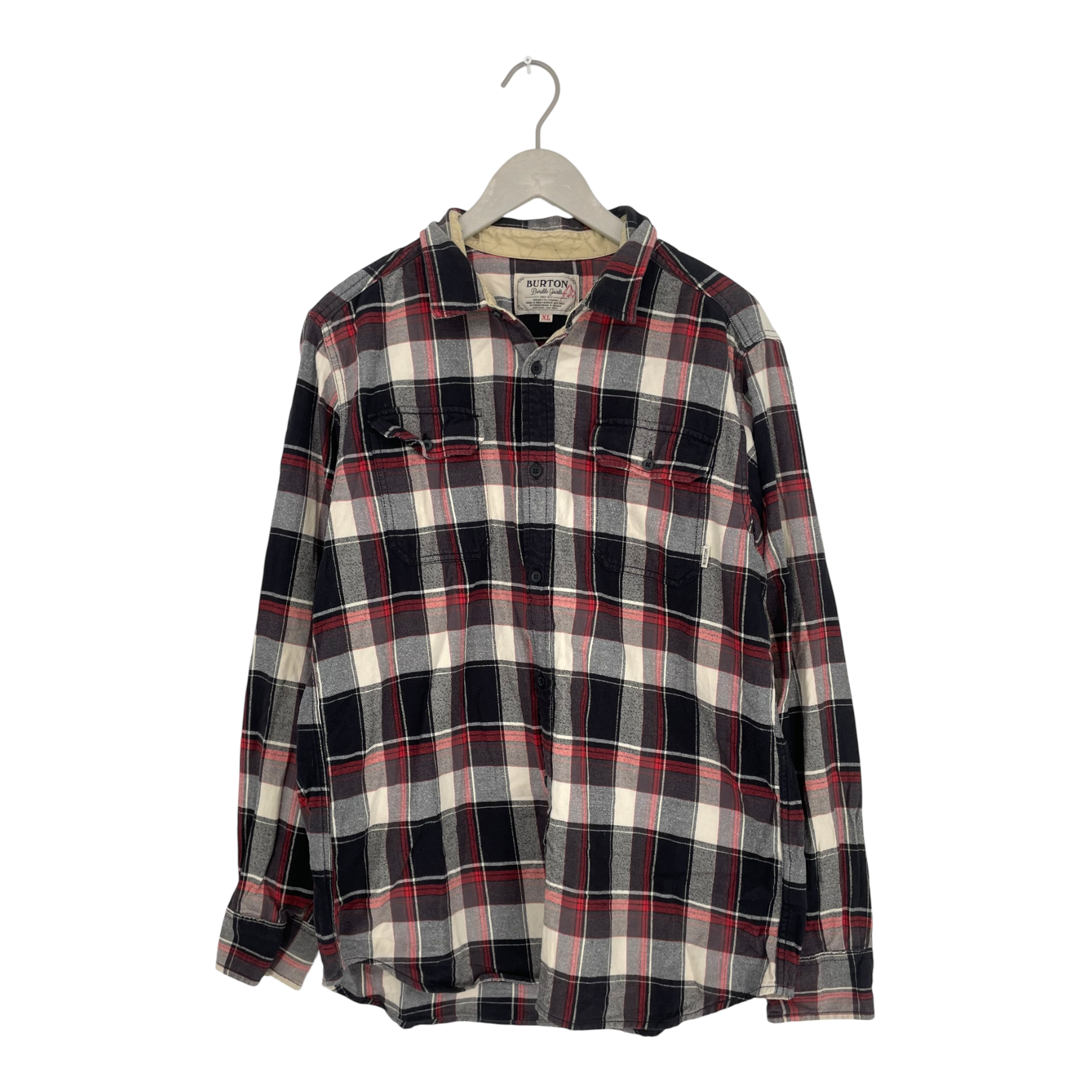 Burton mens Brighton buttoned flannel shirt with long sleeves, collar and two front pockets. Spare buttons included in the laundry tag.