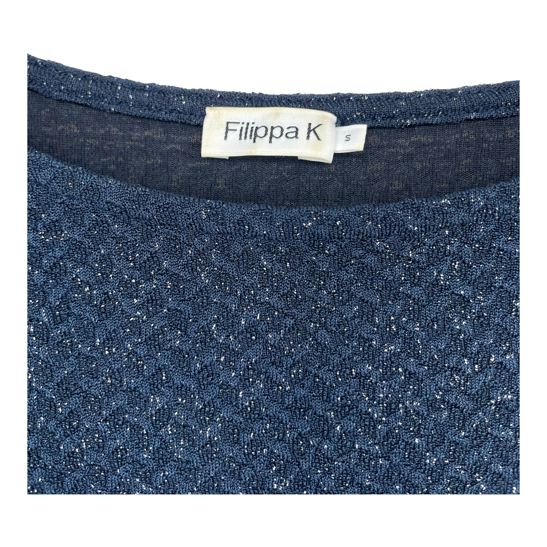 Filippa K women's Glitter dress with long sleeves and shoulder padding. Logo tag is sligthly stained.