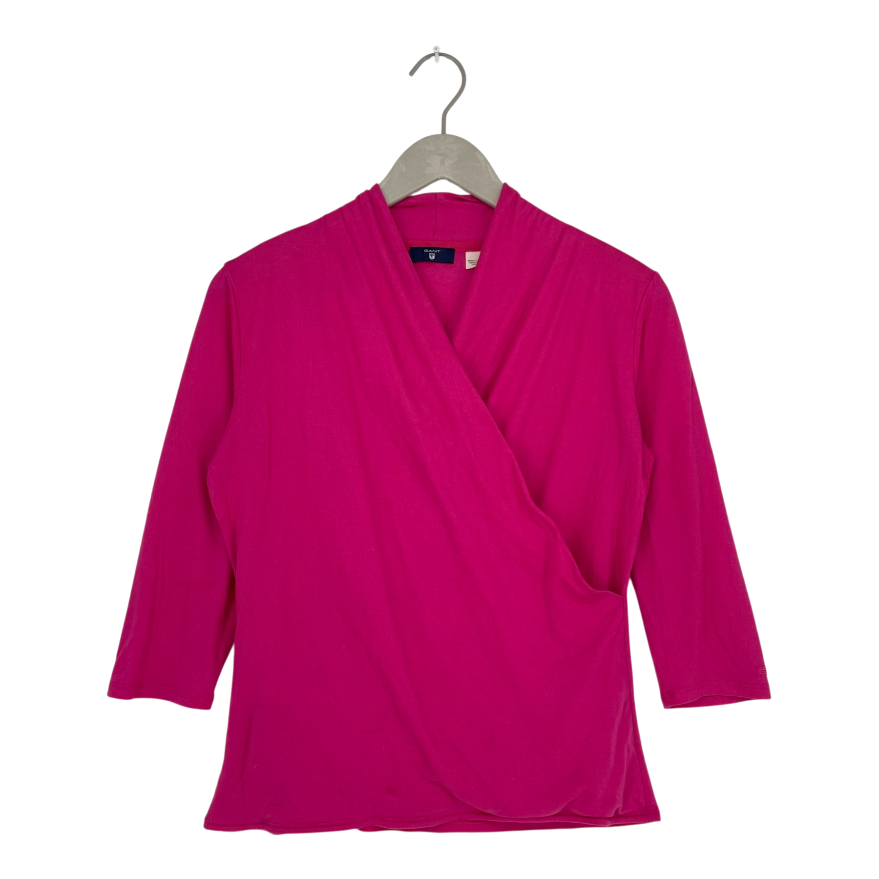 Gant wrap-style shirt blouse featuring a V-neckline with crossover front design and three-quarter length sleeves. Classic tailored silhouette with clean lines.