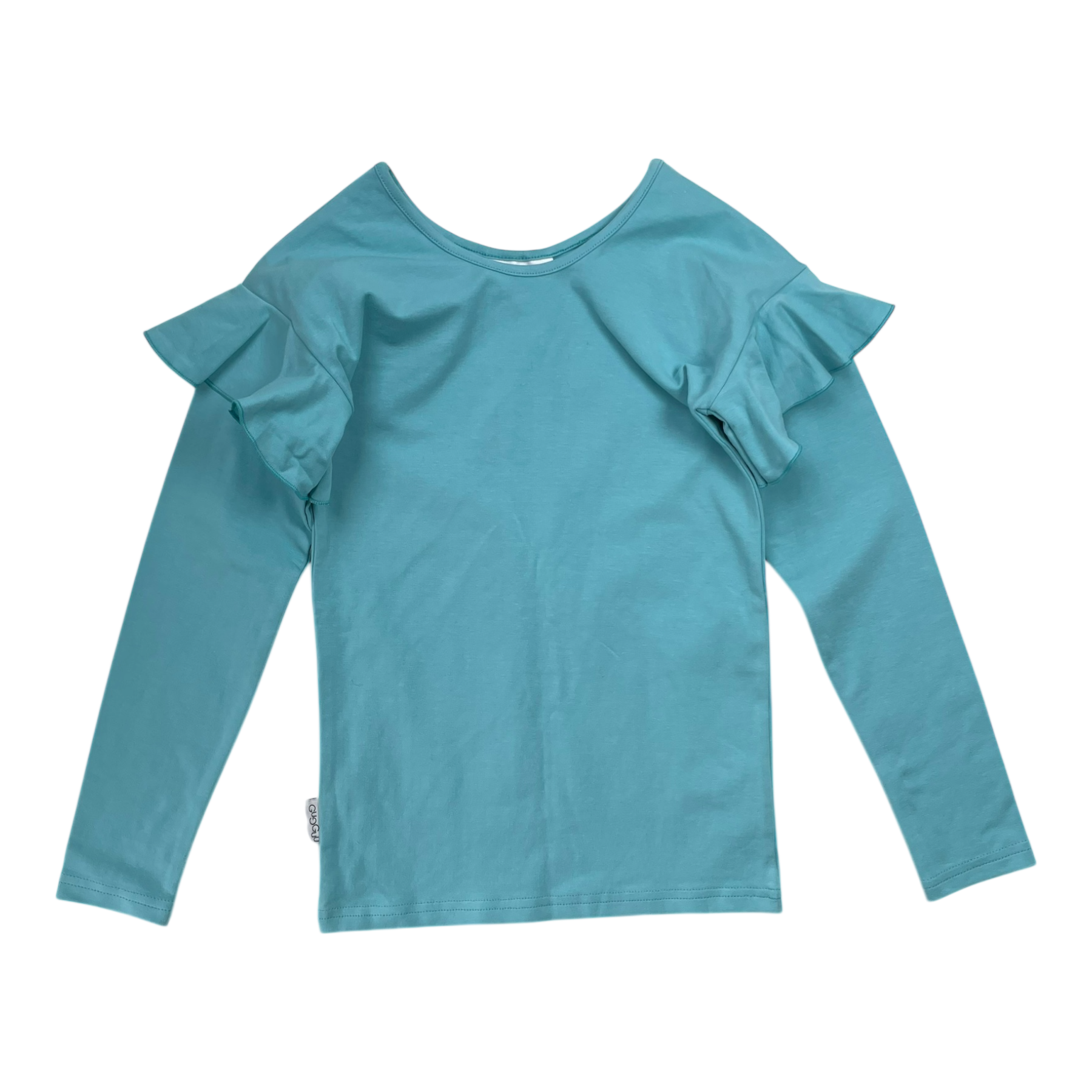 Gugguu long sleeved shirt with frills. Size tag missing but corresponds to size 128cm.