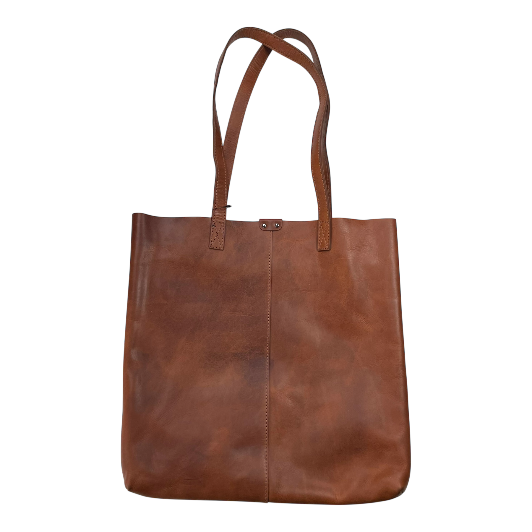 Harold's Caugio shopping shoulder bag up is made from 100% vegetable-tanned cowhide. The leather is soft to the touch and pleasantly lightweight. The wide shoulder strap consists of a textile webbing on one side and a leather strap on the other.