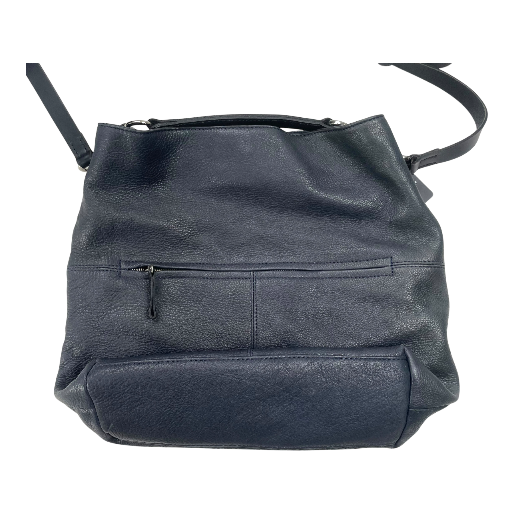 Details: 1 main compartment with magnetic closure, 1 slip pocket, 1 zippered back pocket, Short handle, adjustable shoulder strap