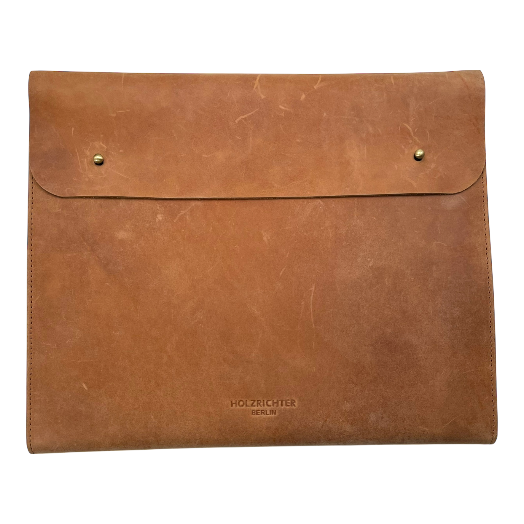 Holzrichter Berlin leather laptop portfolio is a functional and stylish all-in-one solution for modern professionals. Designed for 13" ultrabooks like the MacBook, it opens like a book to reveal a thoughtfully organized interior with dedicated compartments for pens, notepads, documents, business cards, and other daily essentials. A high-quality metal zipper ensures everything stays secure, while the padded cotton-lined interior with leather reinforcements offers reliable protection for your device. Perfect for meetings, travel, or hybrid work