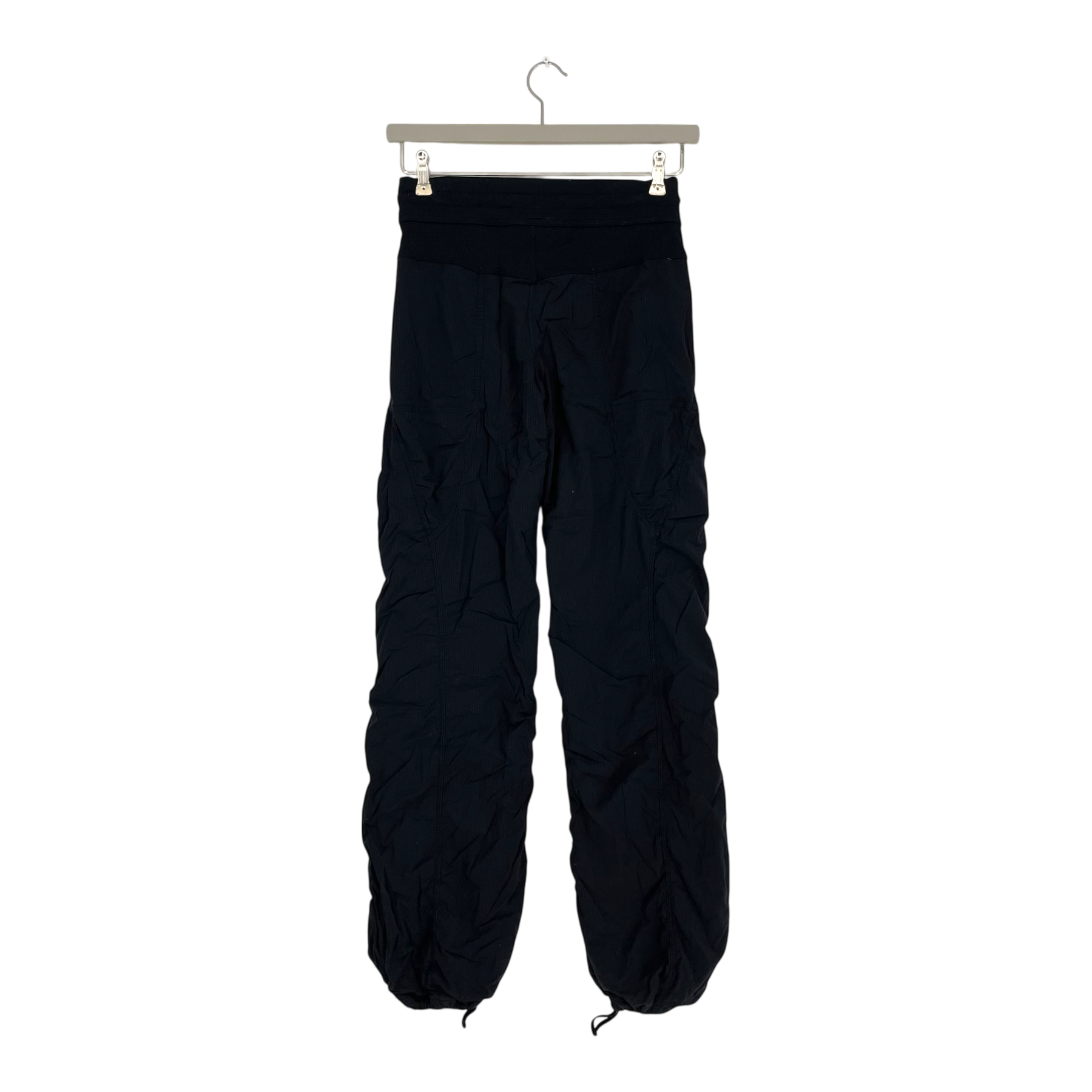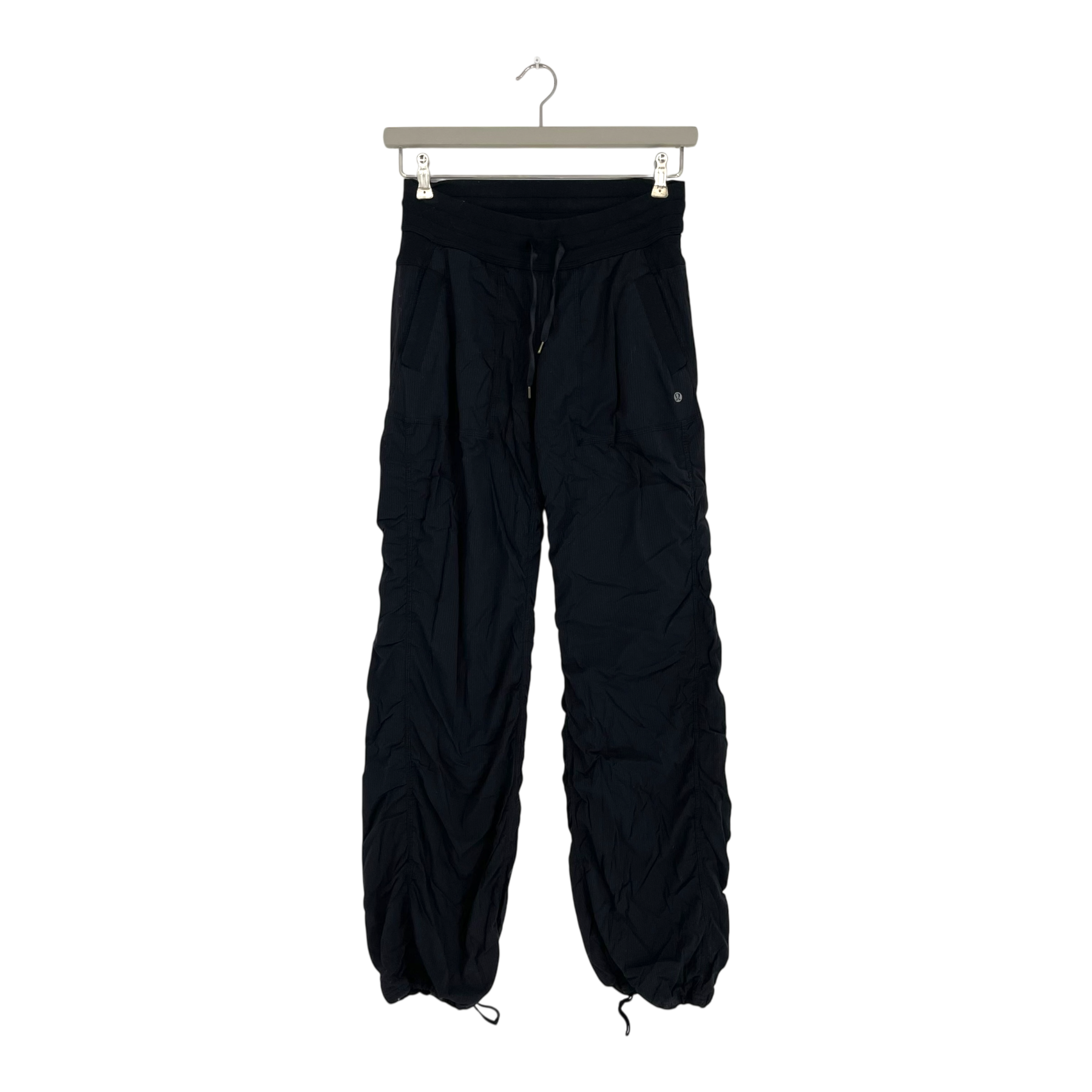 Lululemon Dance Studio pants adjustable drawstrings on at the cuffs, pockets, and a ruching detail.