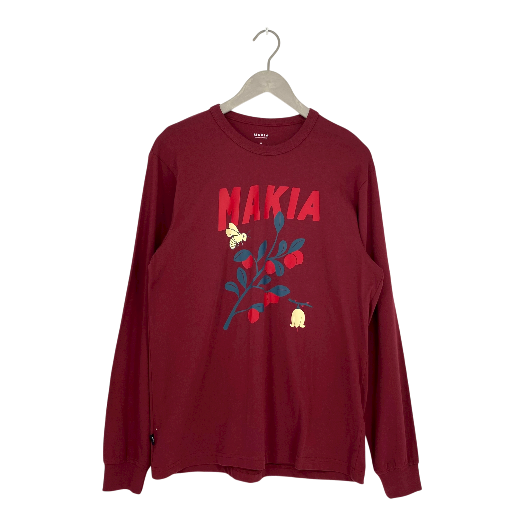 Makia long sleeve shirt with print on thee front.