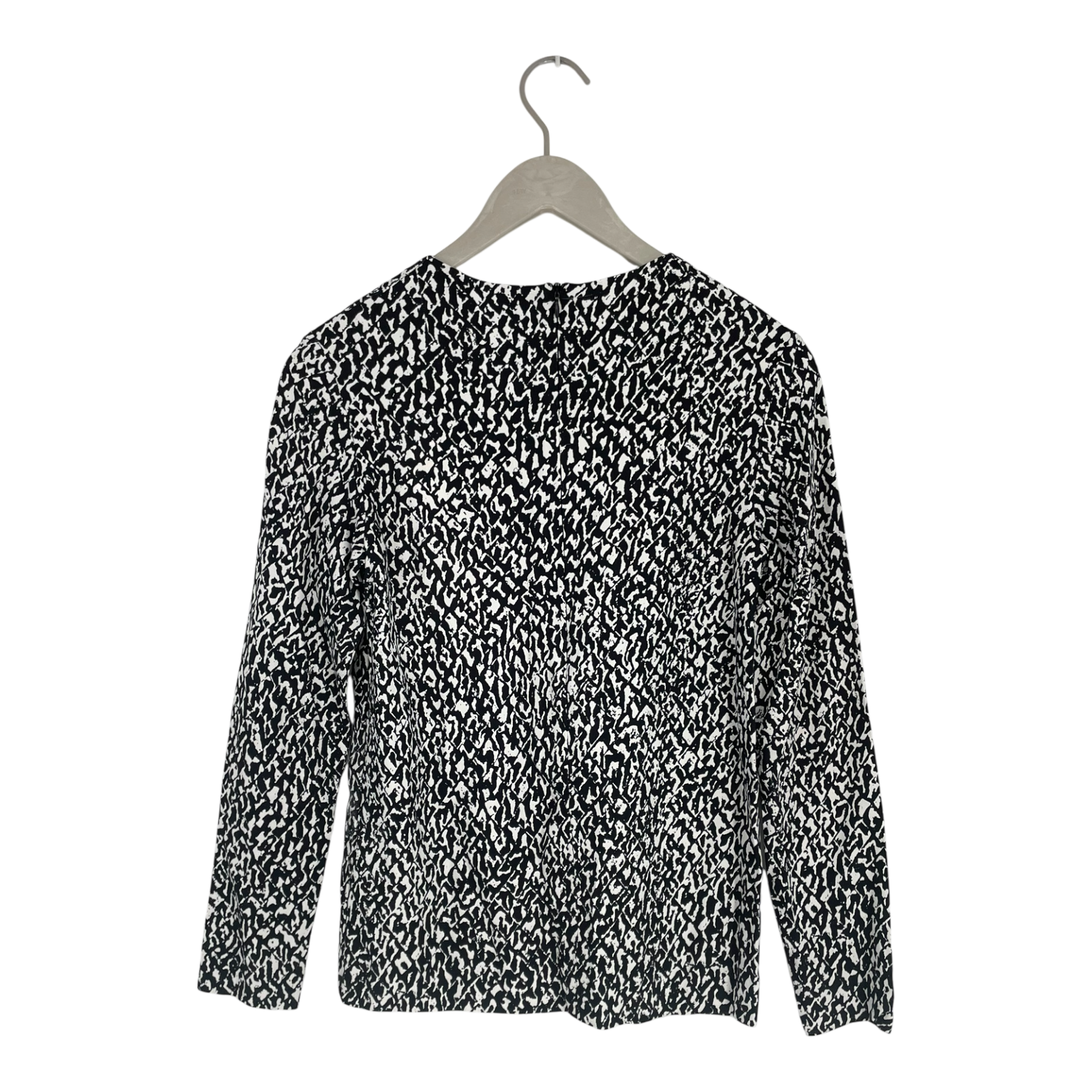 Marimekko long sleeve Amalia shirt in the abstract black and white Datsa design. Hidden zipper on the back. The shirt is form fitted and the fabric has no give.