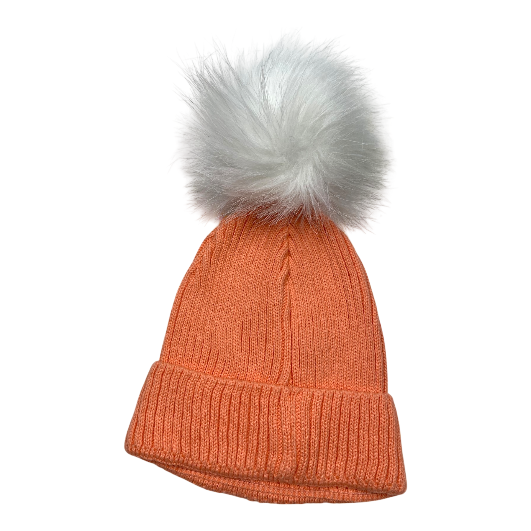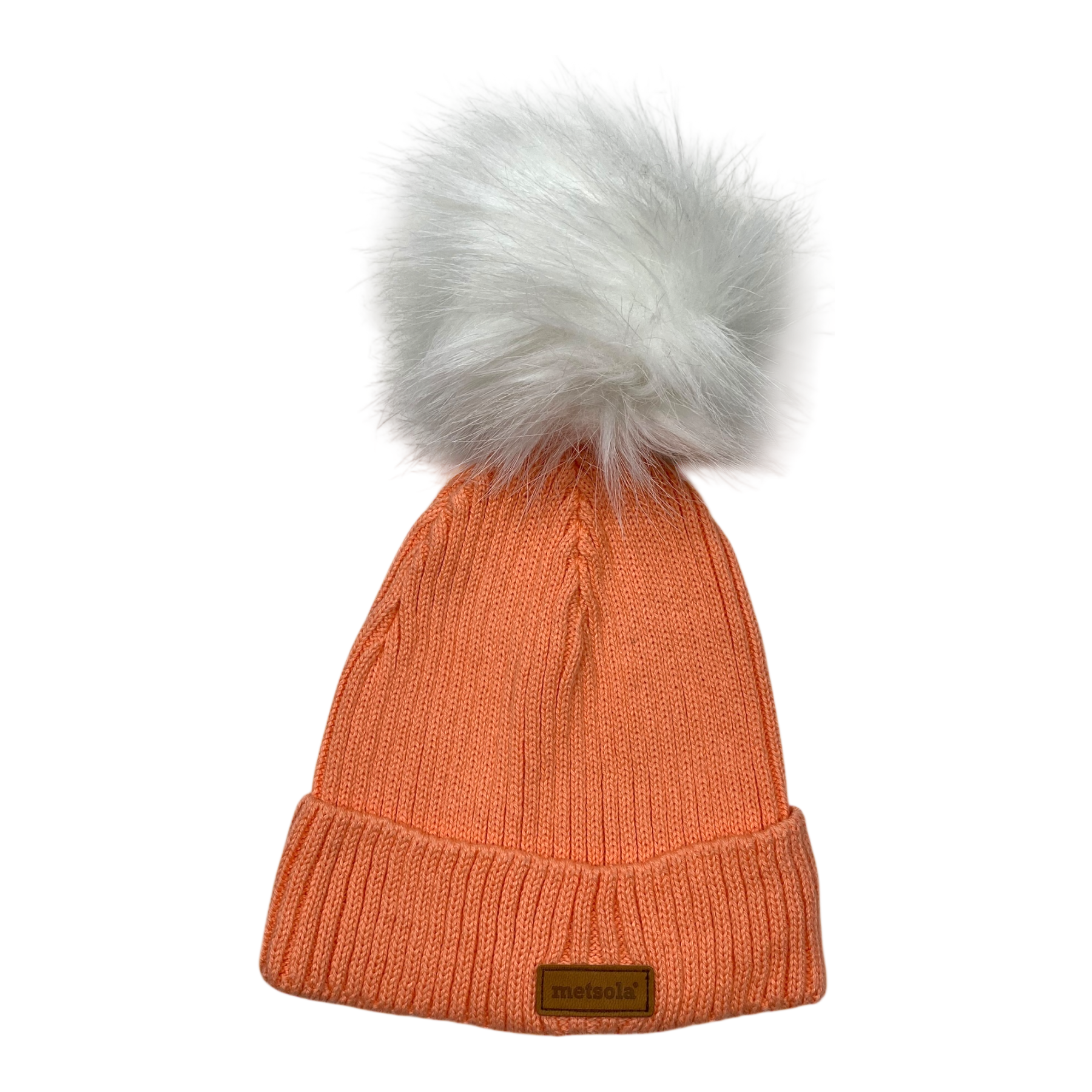 Metsola knittes beanie with faux fur pom.