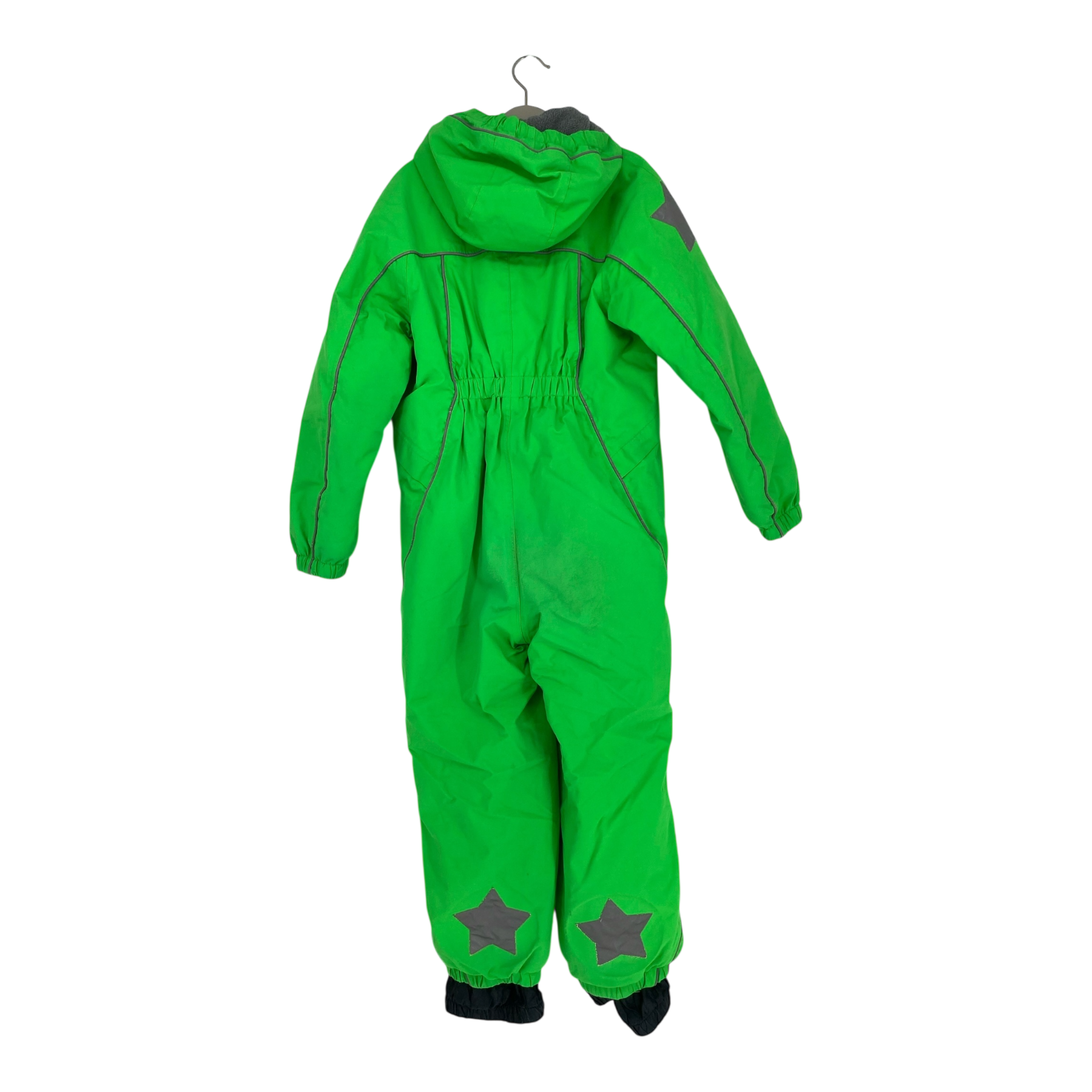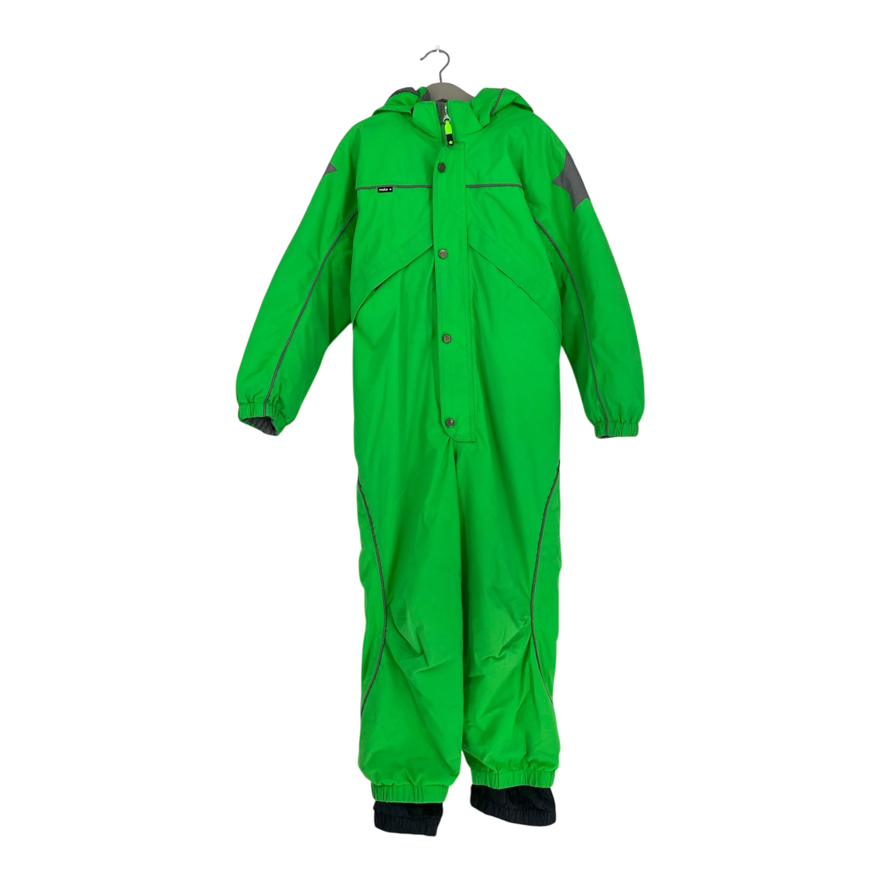 Molo Polaris is a functional snowsuit with reflector piping. Polaris has a detachable hood, a covered front zip closure and Molo's star reflectors on the sleeves and legs. It has snow flaps at the legs and rubber stirrups. The snowsuit is originally windproof, waterproof and breathable and has taped seams with 15.000 mm column pressure.