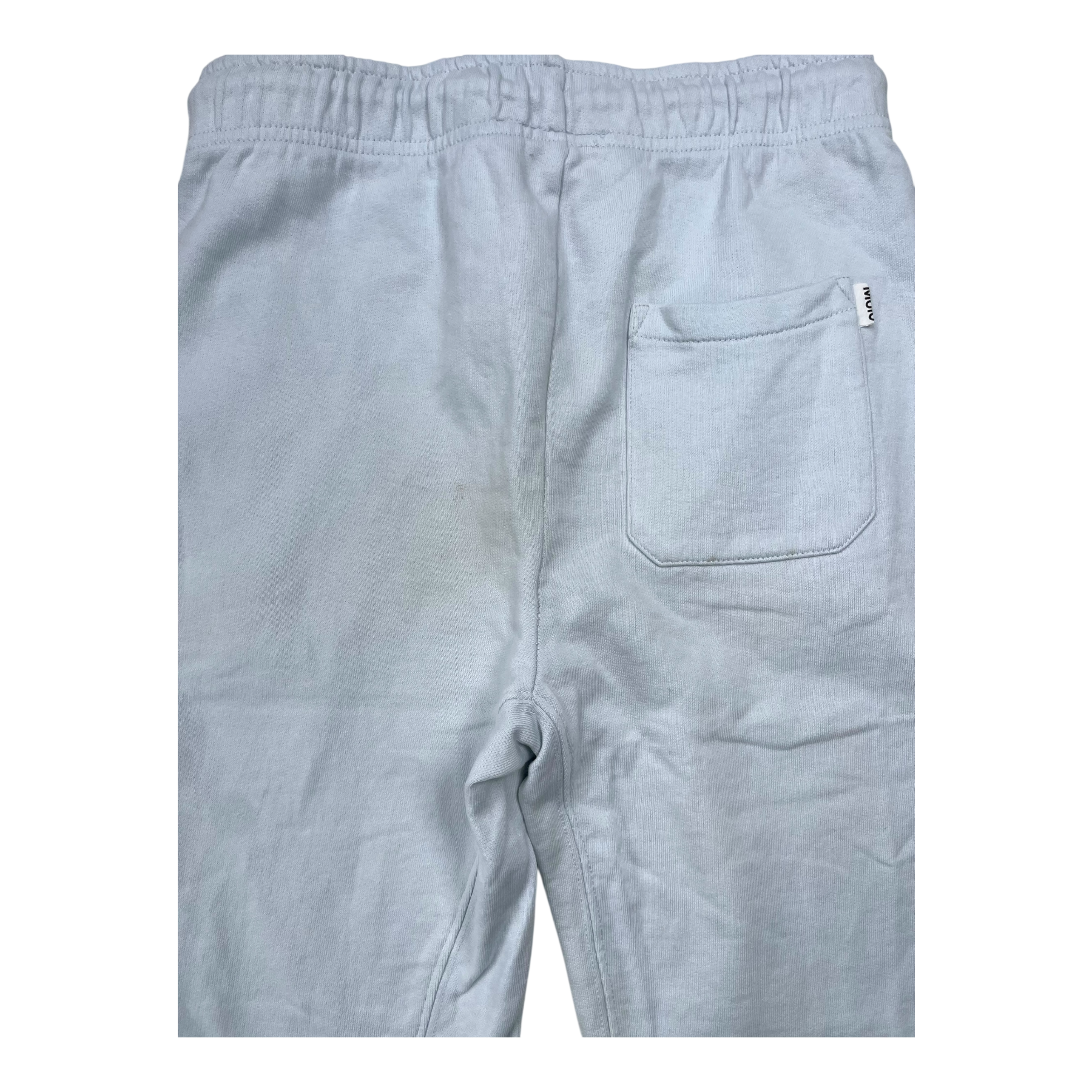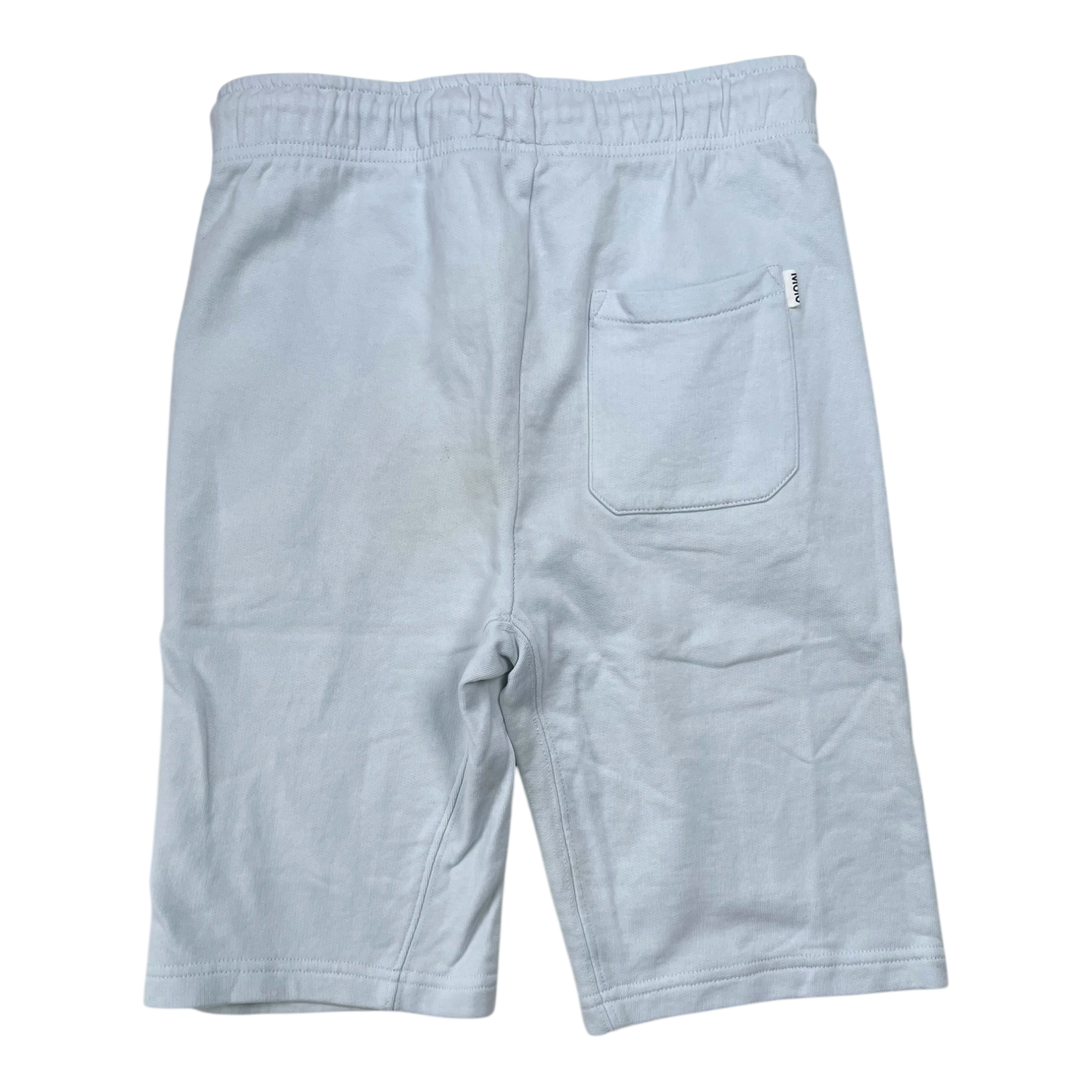 Molo Aliases sweat shorts with two zippered front pockets and an adjustable waist. There is a very small, barely noticeable stain on the back.