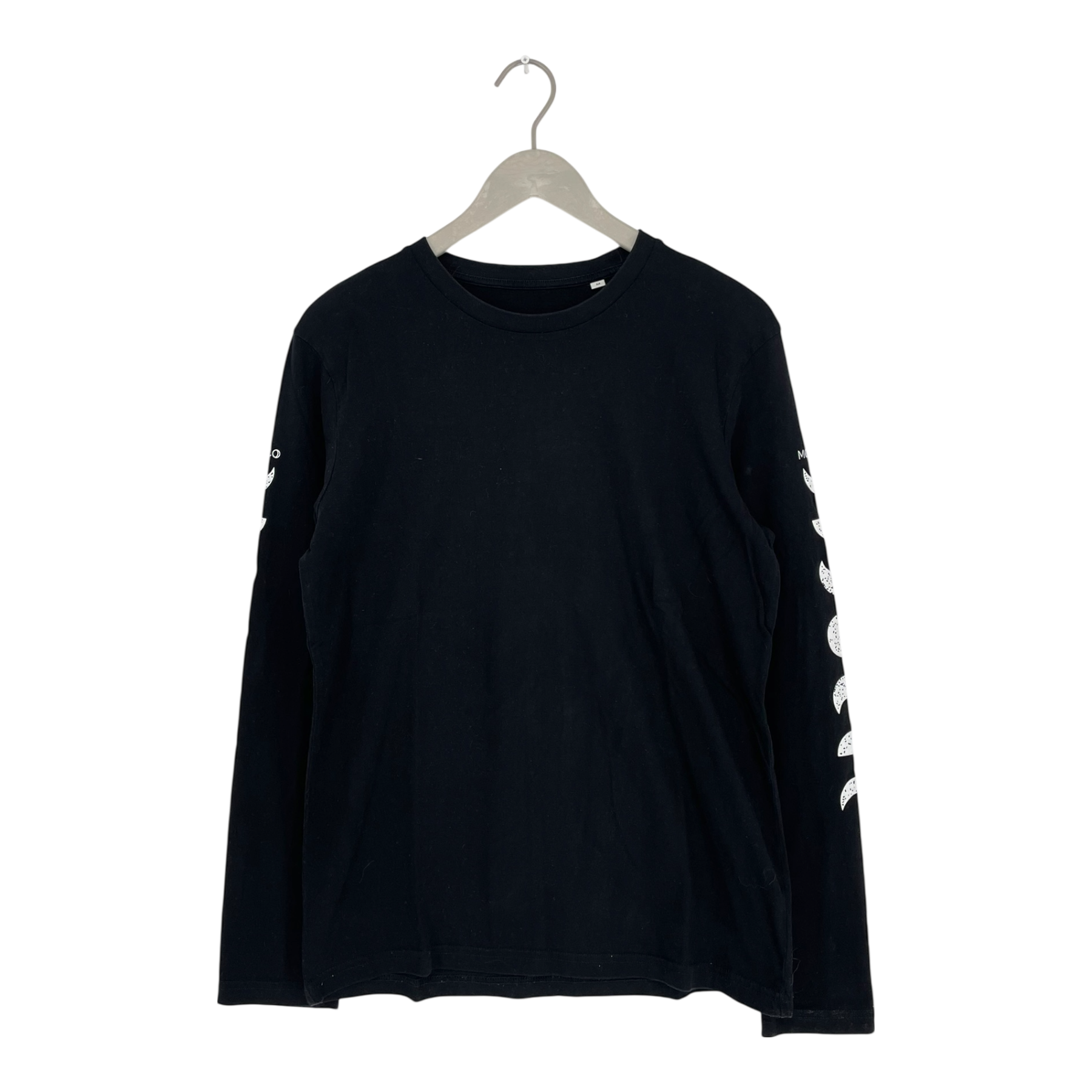 Morico women's long sleeved shirt with a moon print on the sleeve. Some minor fading on the collar seams, as shown in the last picture.