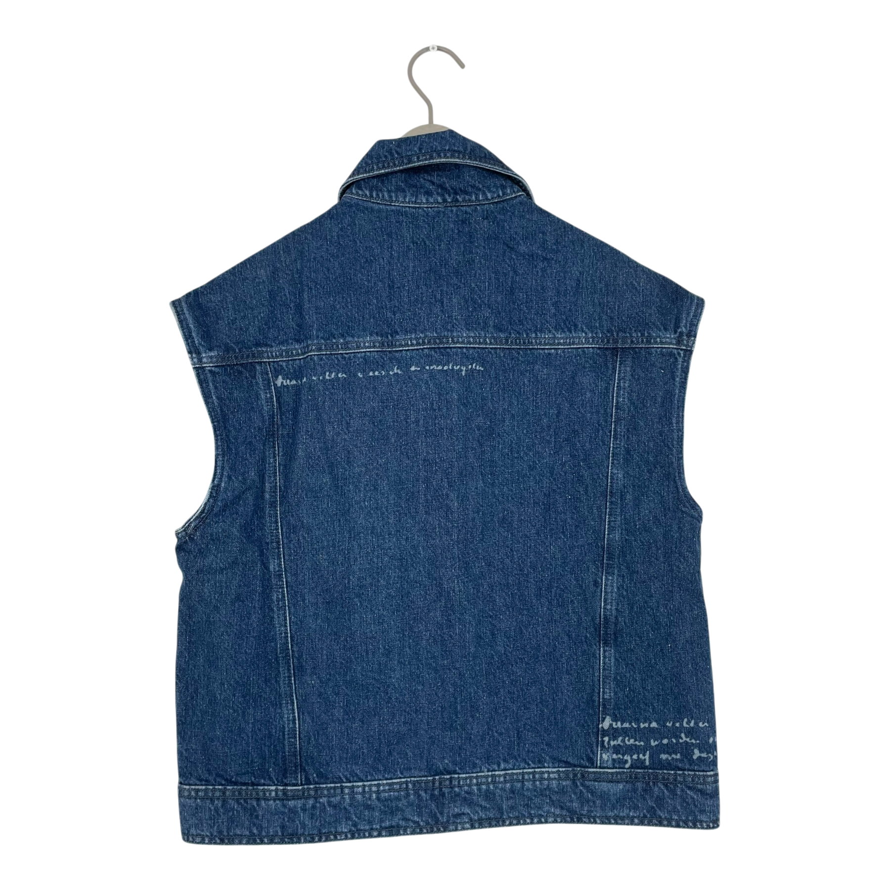Mud Jeans van Gogh vest is a part pf the summer 2022 recycled denim capsule collection. Collaboration between Van Gogh Museum and MUD Jeans – the world’s first circular denim brand. The items in the collection feature lasered details of Vincent van Gogh’s handwriting, from his letters, and embroidered back prints of his masterpieces Almond Blossom and Self-Portrait with Grey Felt Hat.