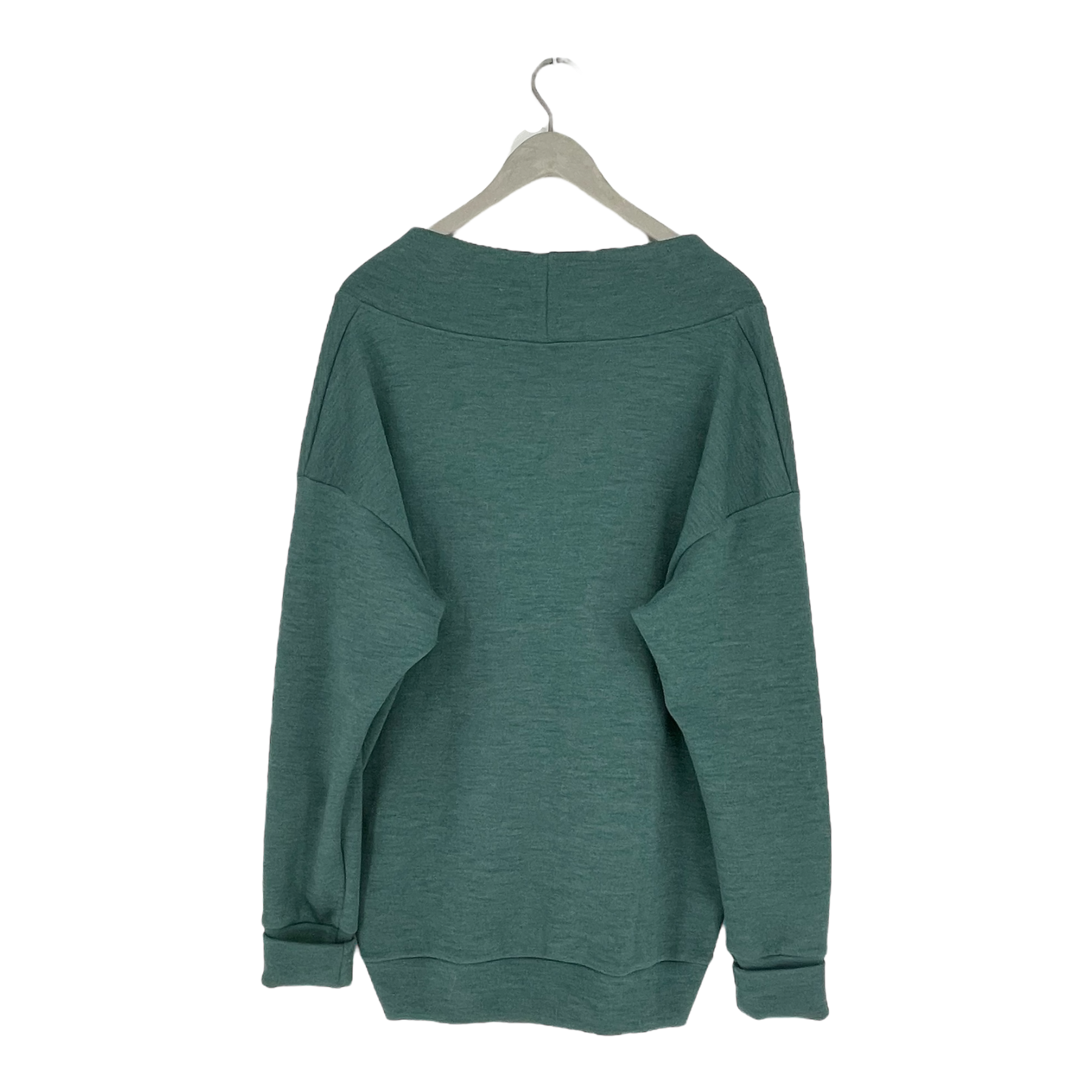Ommellinen merino wool Kolmioneule sweater has a risen v-neck and long sleeves.