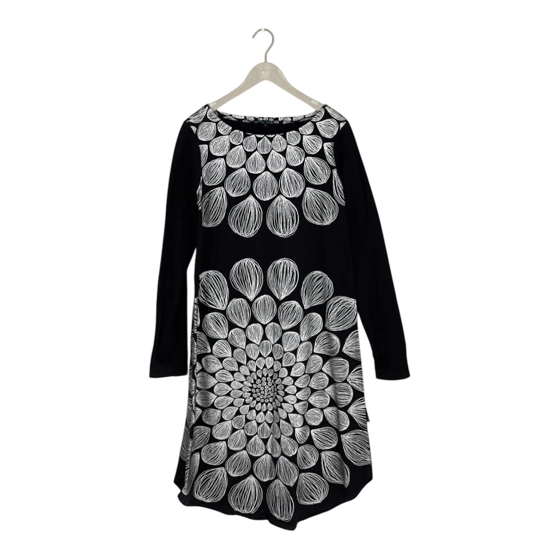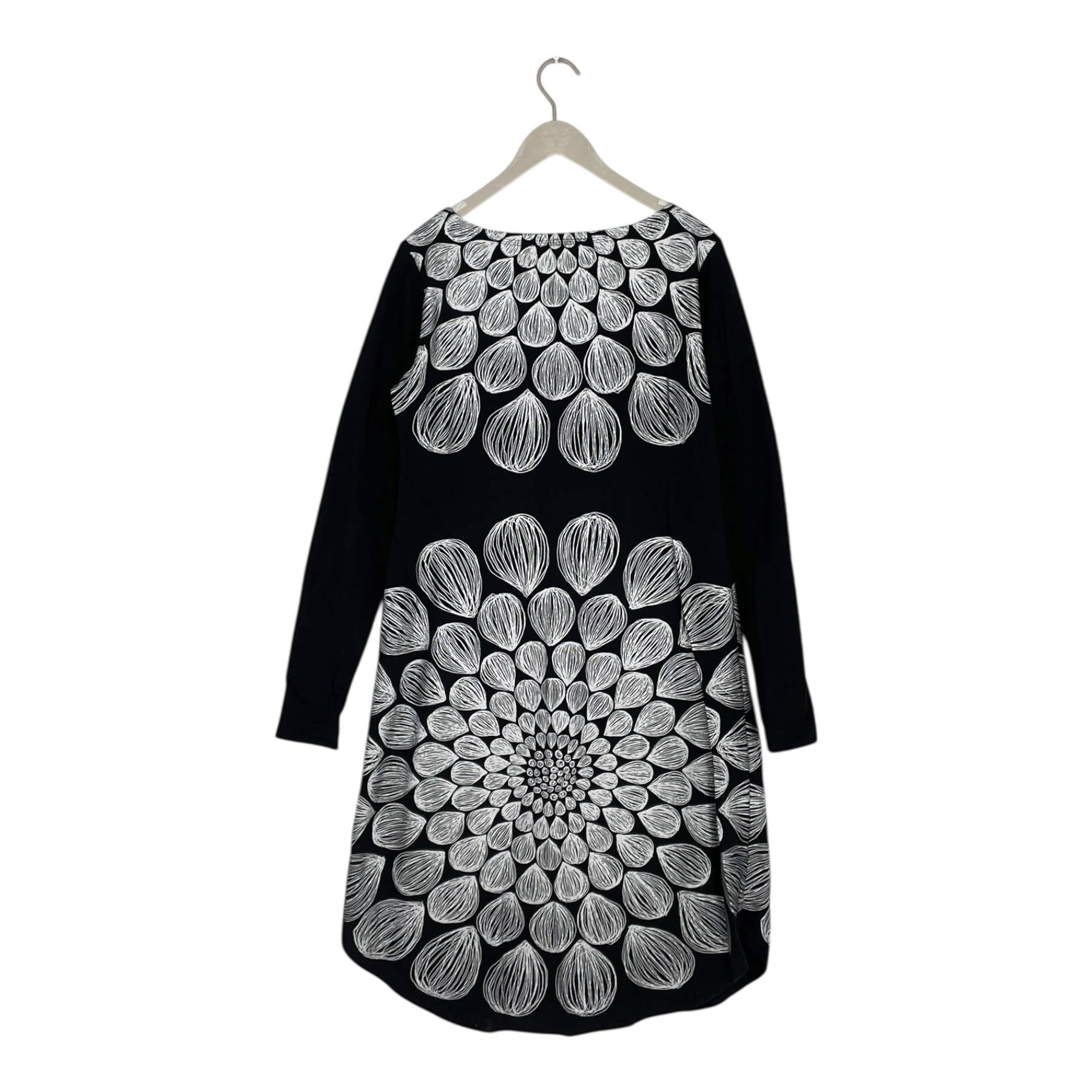 Ommellinen dress with full-length sleeves, designed in a slim-fit yet slightly A-line silhouette, featuring a lively silver-colored print.