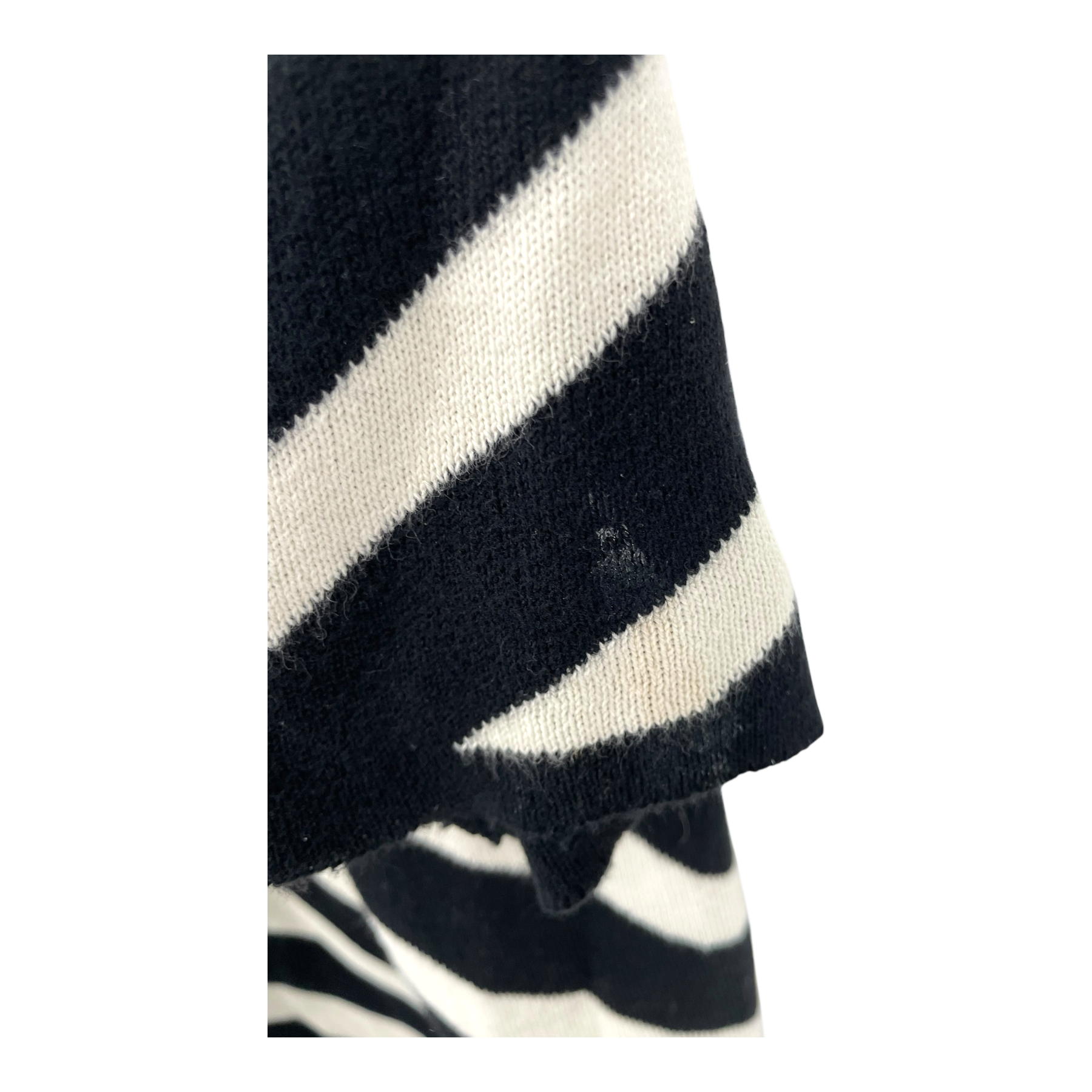 Papu women's jacquard knitted long cardigan with side pockets and dropped shoulders. The item has multiple small stains, as shown in the pictures.
