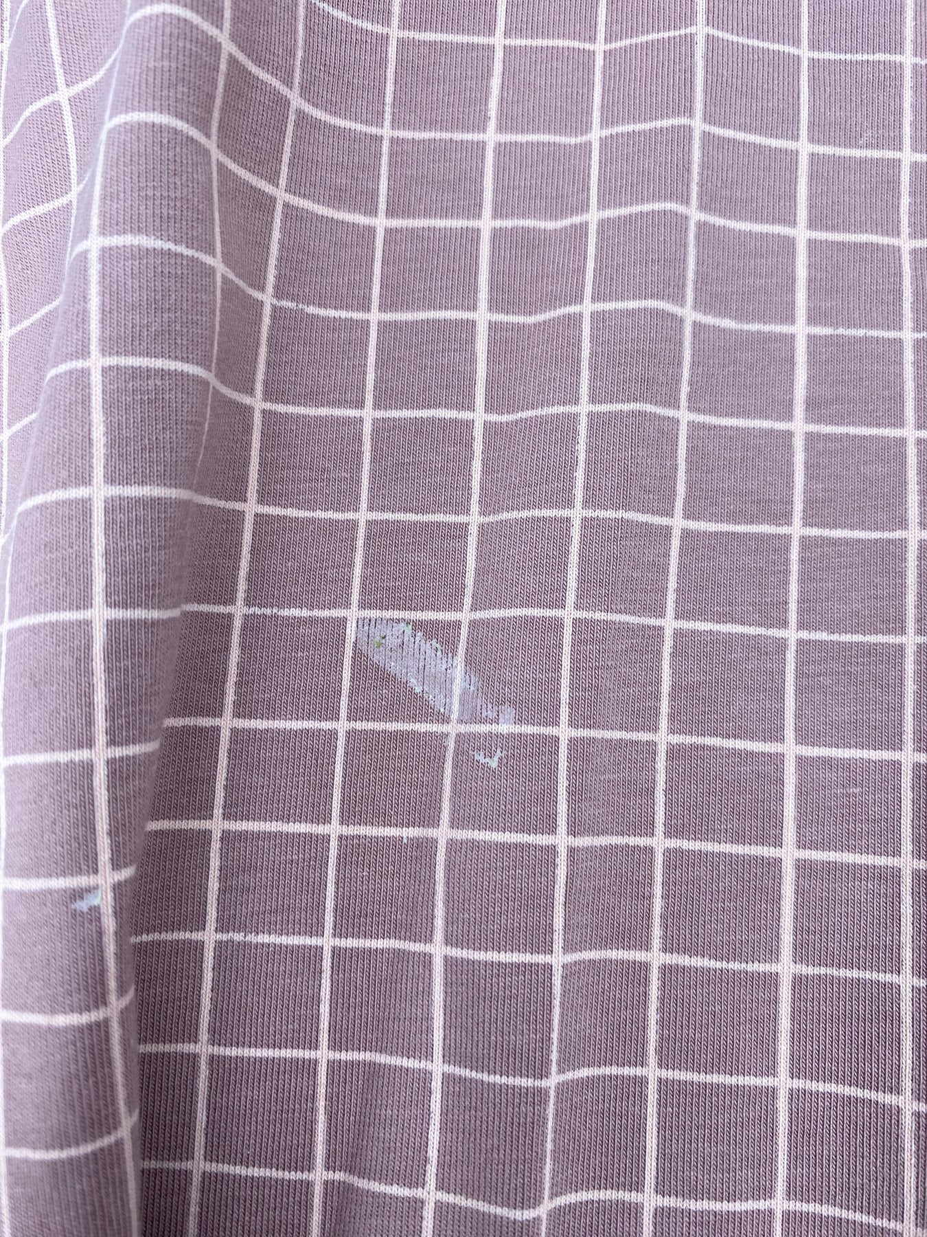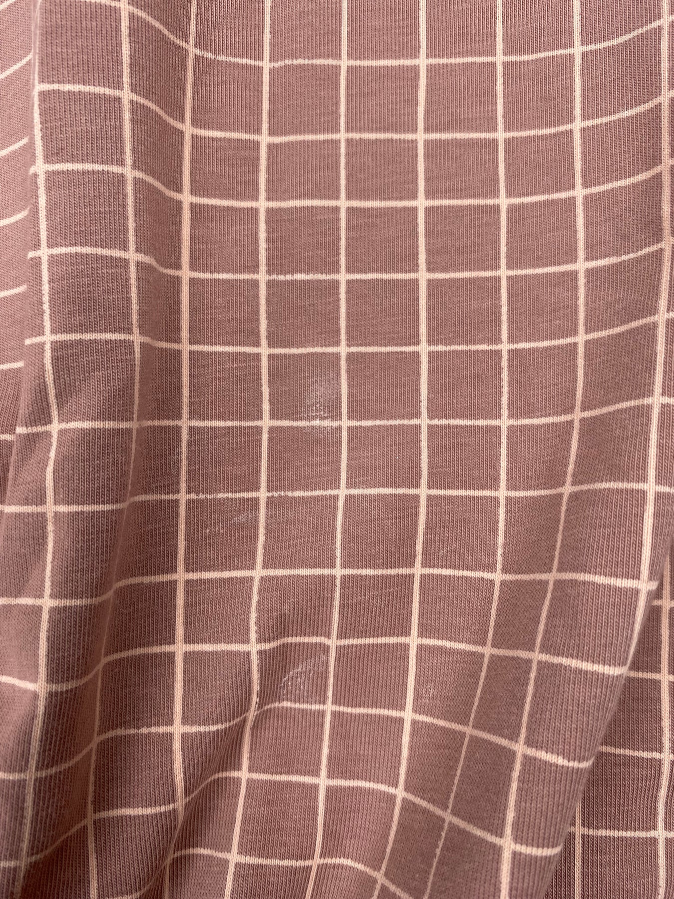Papu tricot long sleeve dress with elastic hem and neckline with a square print. The item has stain which probably will come off in the wash.