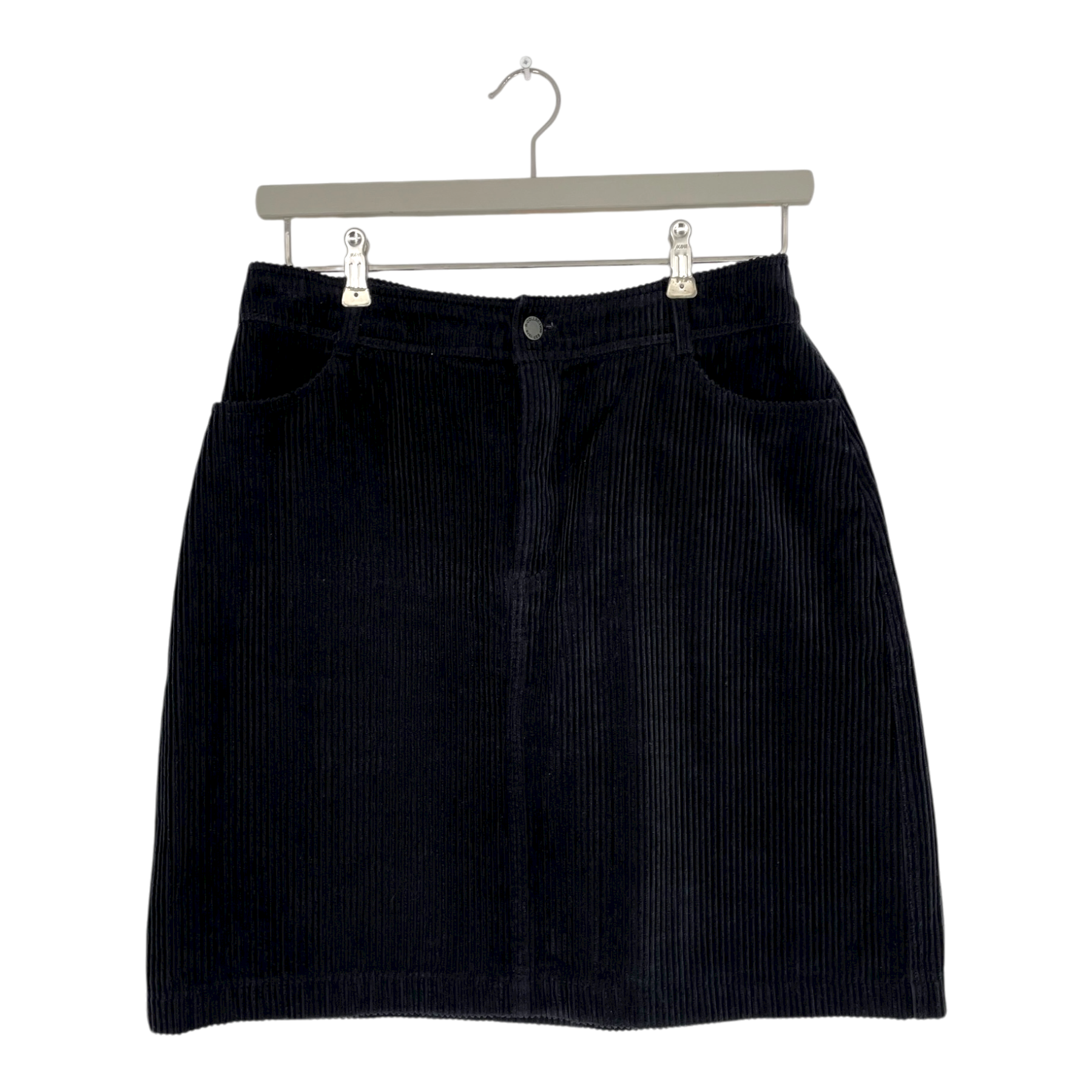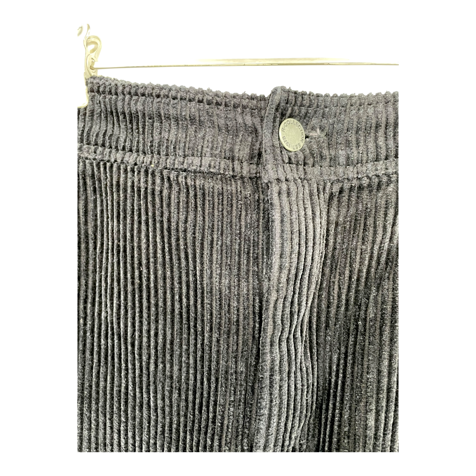 R-Collection corduroy skirt with zipper closure and four pockets. There is some very slight wear on the surface of the fabric.