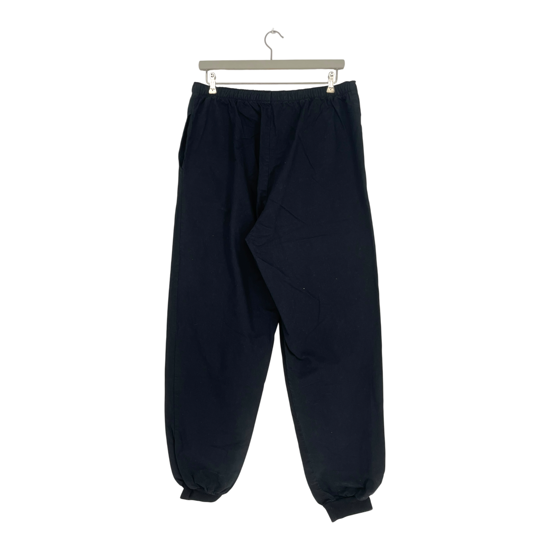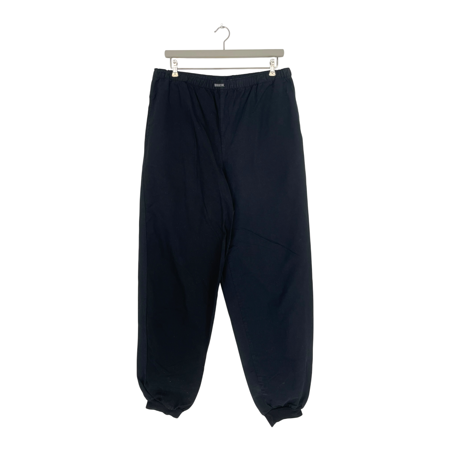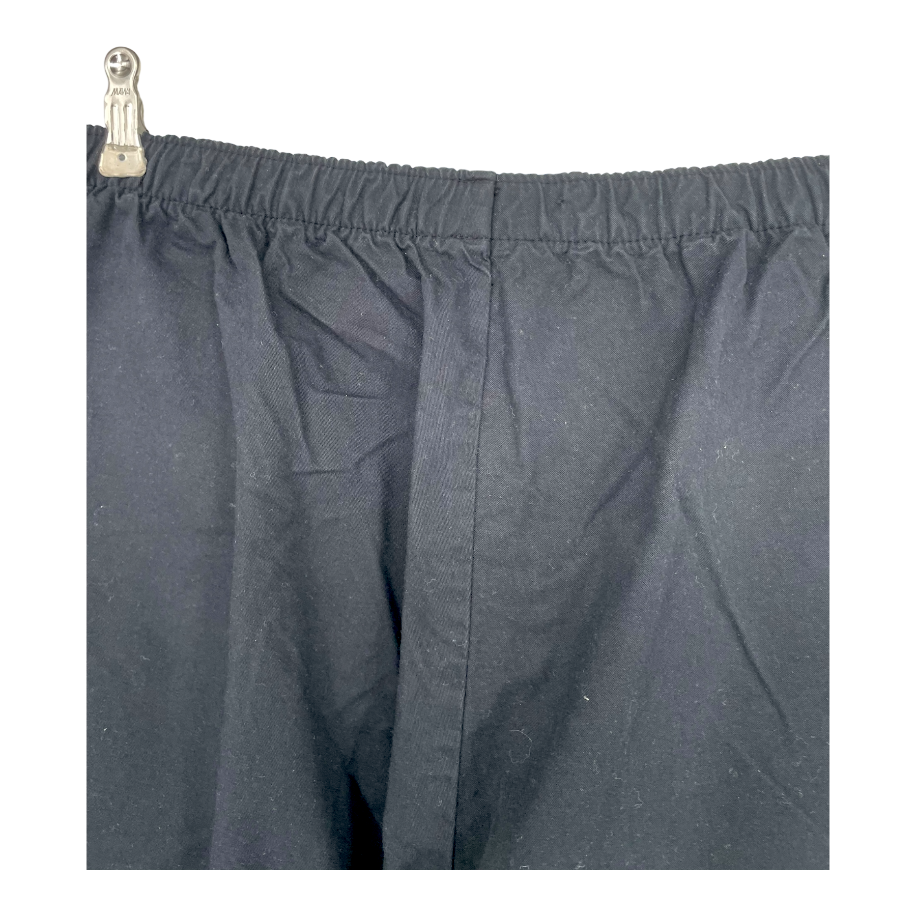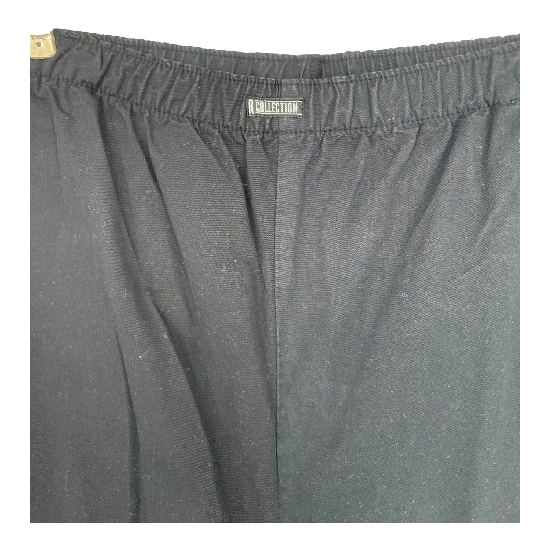 R-Collection women's woven pants with an elastic waistband and two side pockets. The pants have multiple signs of wear, pilling on the crotch area, fading on the seams and some pulls of thread on the pocket areas.