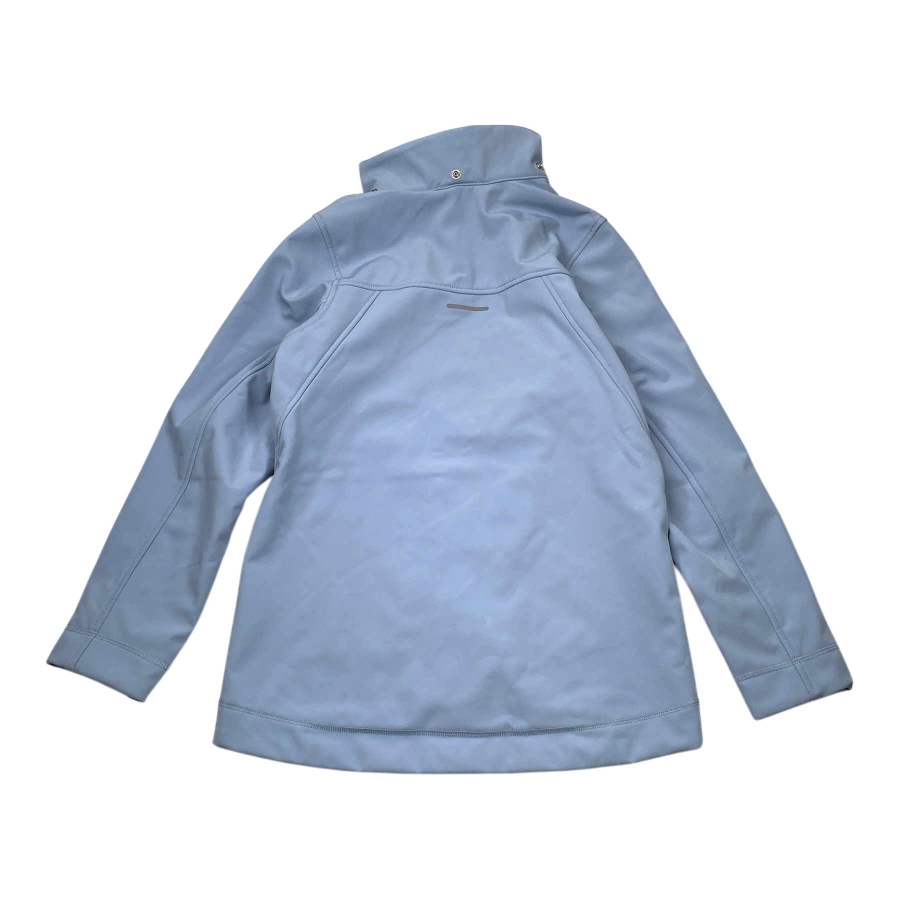 Reima Espoo softshell jacket with zip closure, two zip pockets, and reflective details. The material is originally wind- and waterproof up to 10,000mm water column. The hood is missing.
