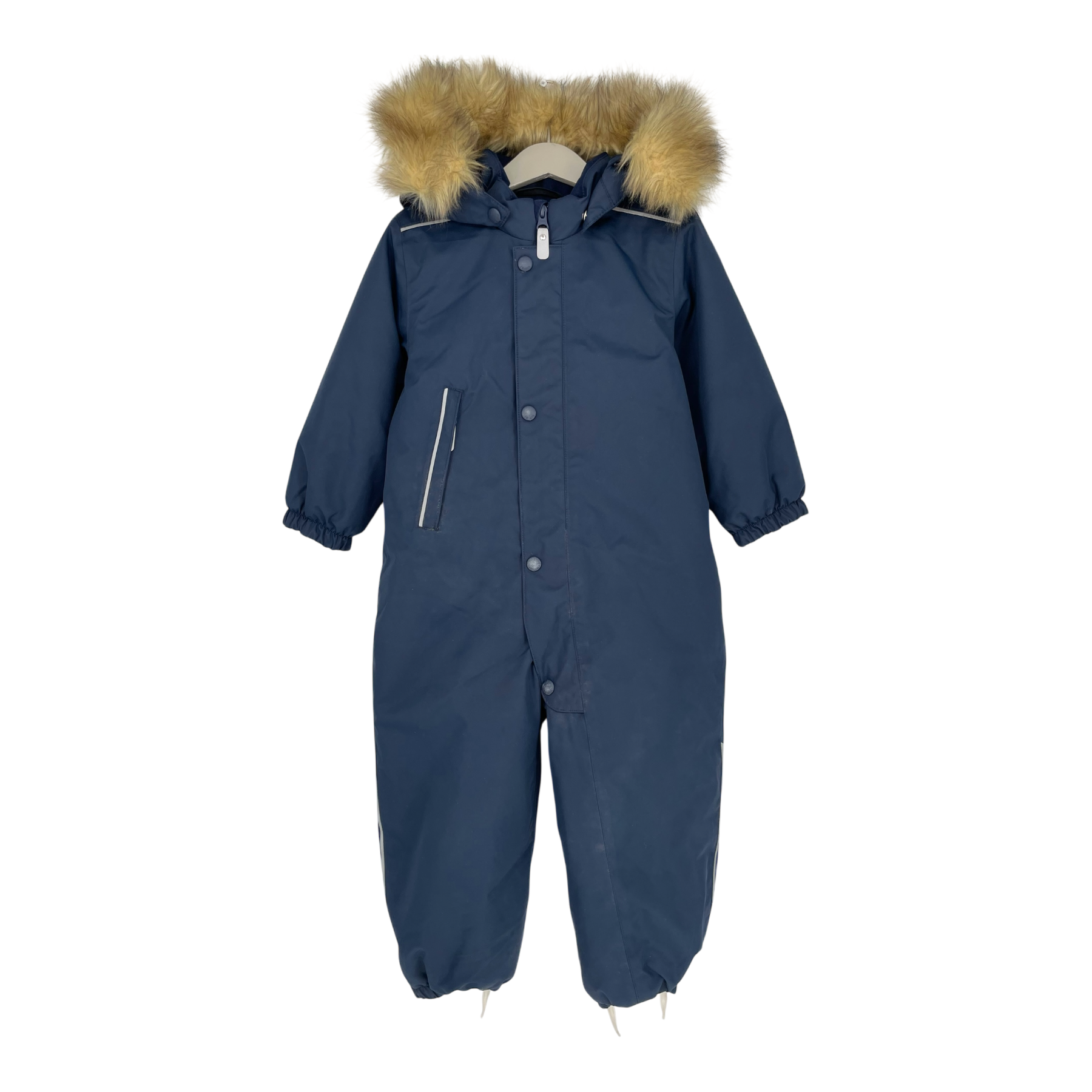 Reima Gotland winter overall with detachable faux fur hood and one zip pocket. This winter style has an insulated seat that keeps the bottom warm and dry during fun winter adventures. The smooth polyester lining makes dressing up easy, and the lining is also ideal with warm mid-layers.