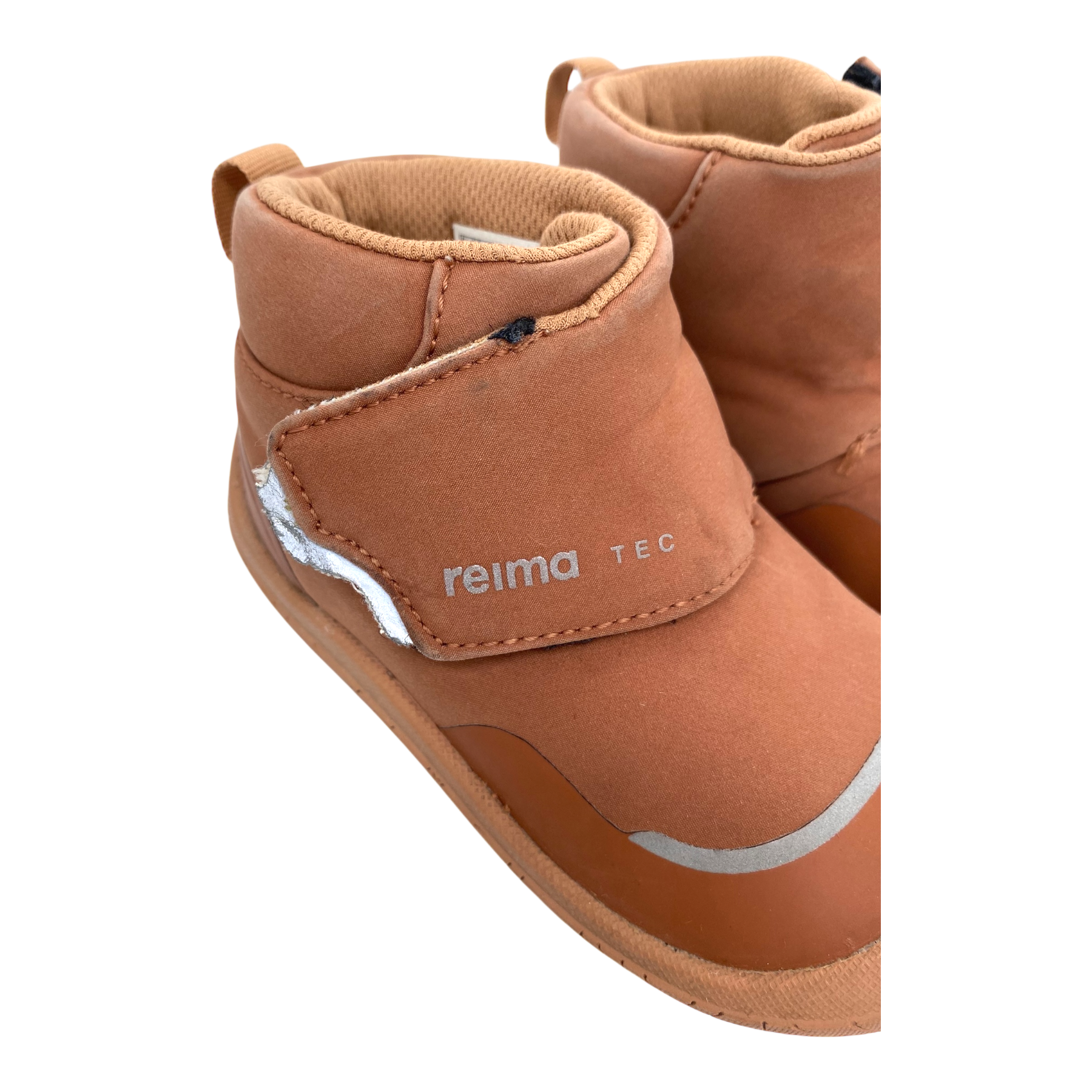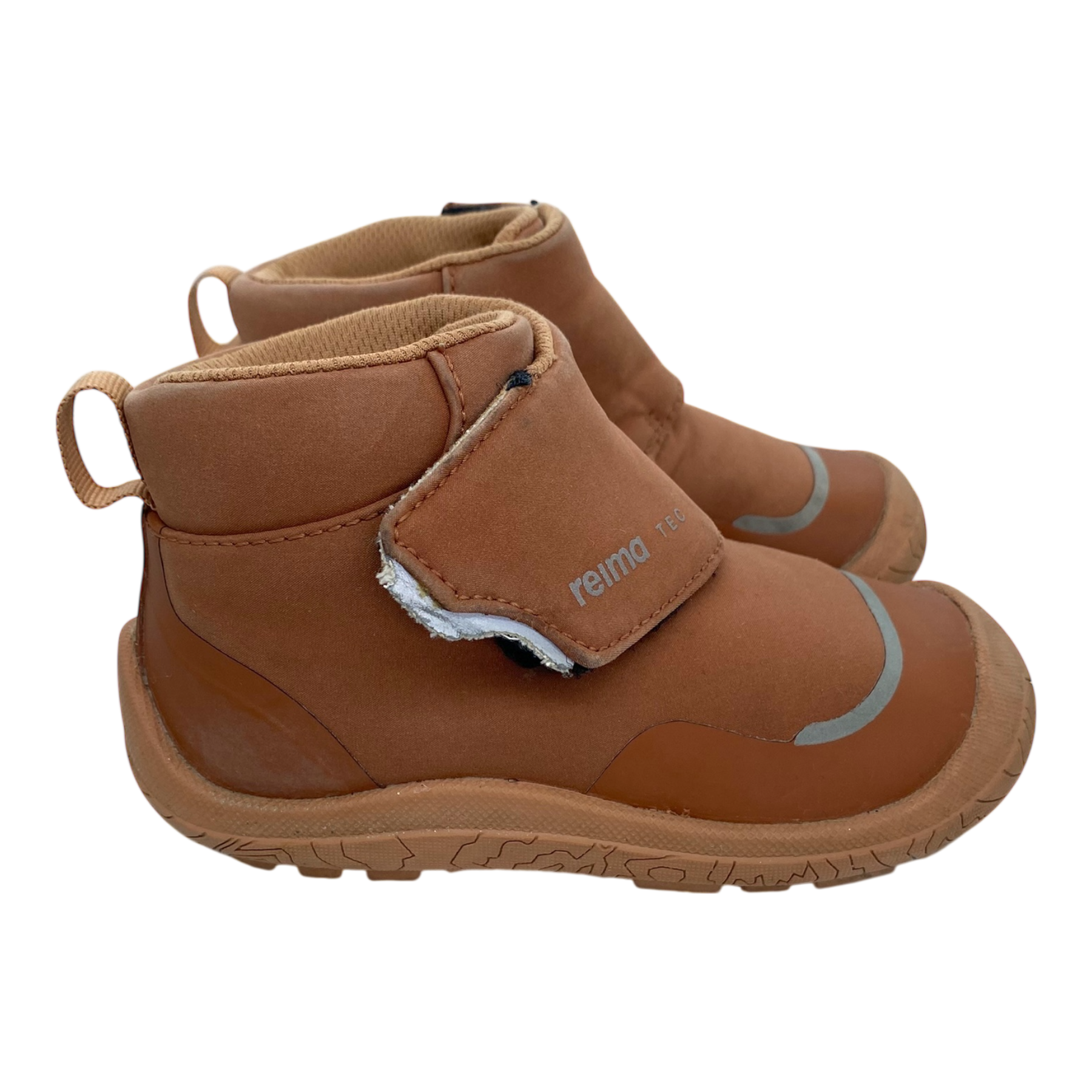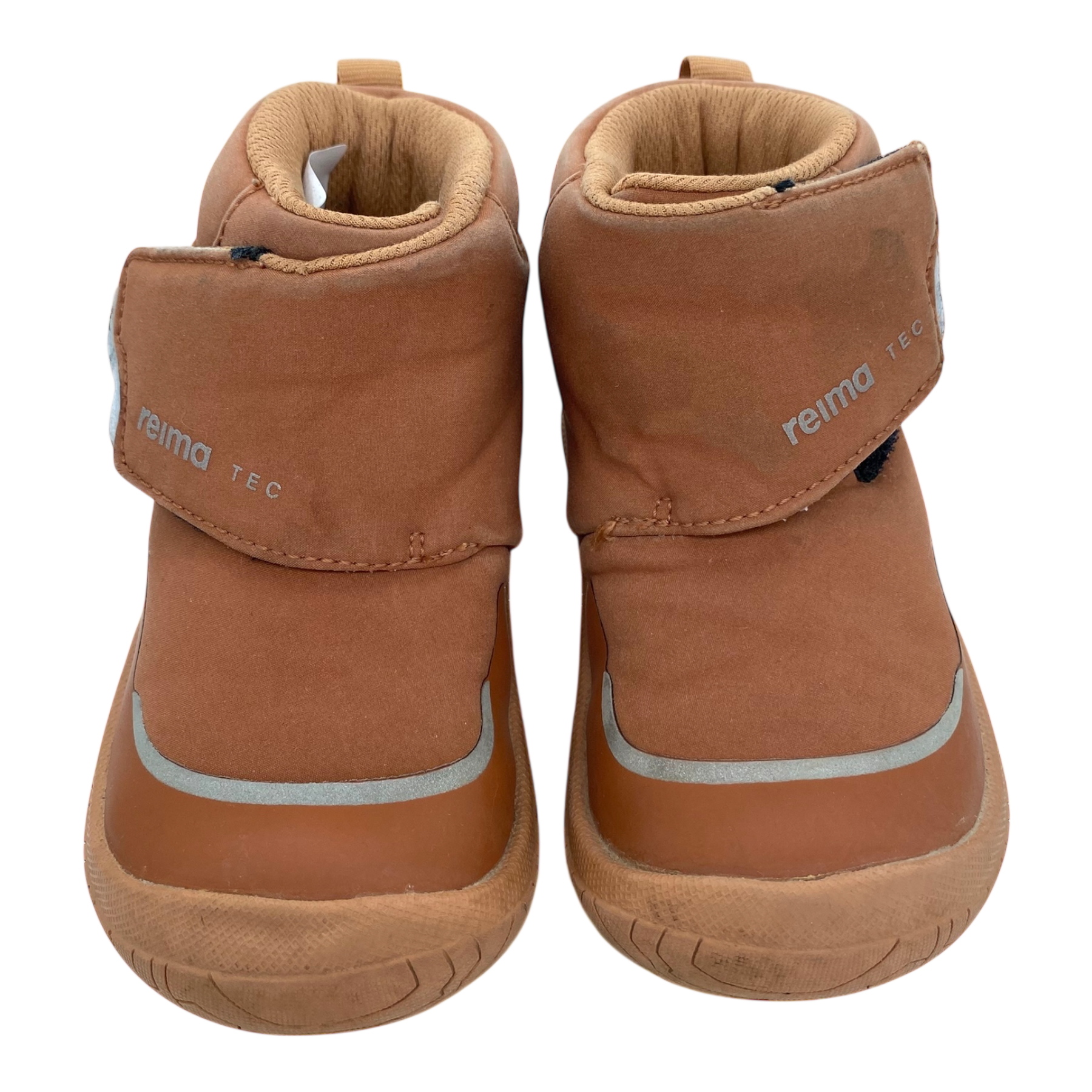 Reima Hyppii barefoot shoes with hook-and-loop fastening. Easy-to-use, comfortable all-weather boots for fall and spring. Shoes are originally waterproof and boots offer a waterproof membrane and comfy lining to keep kids' feet dry.