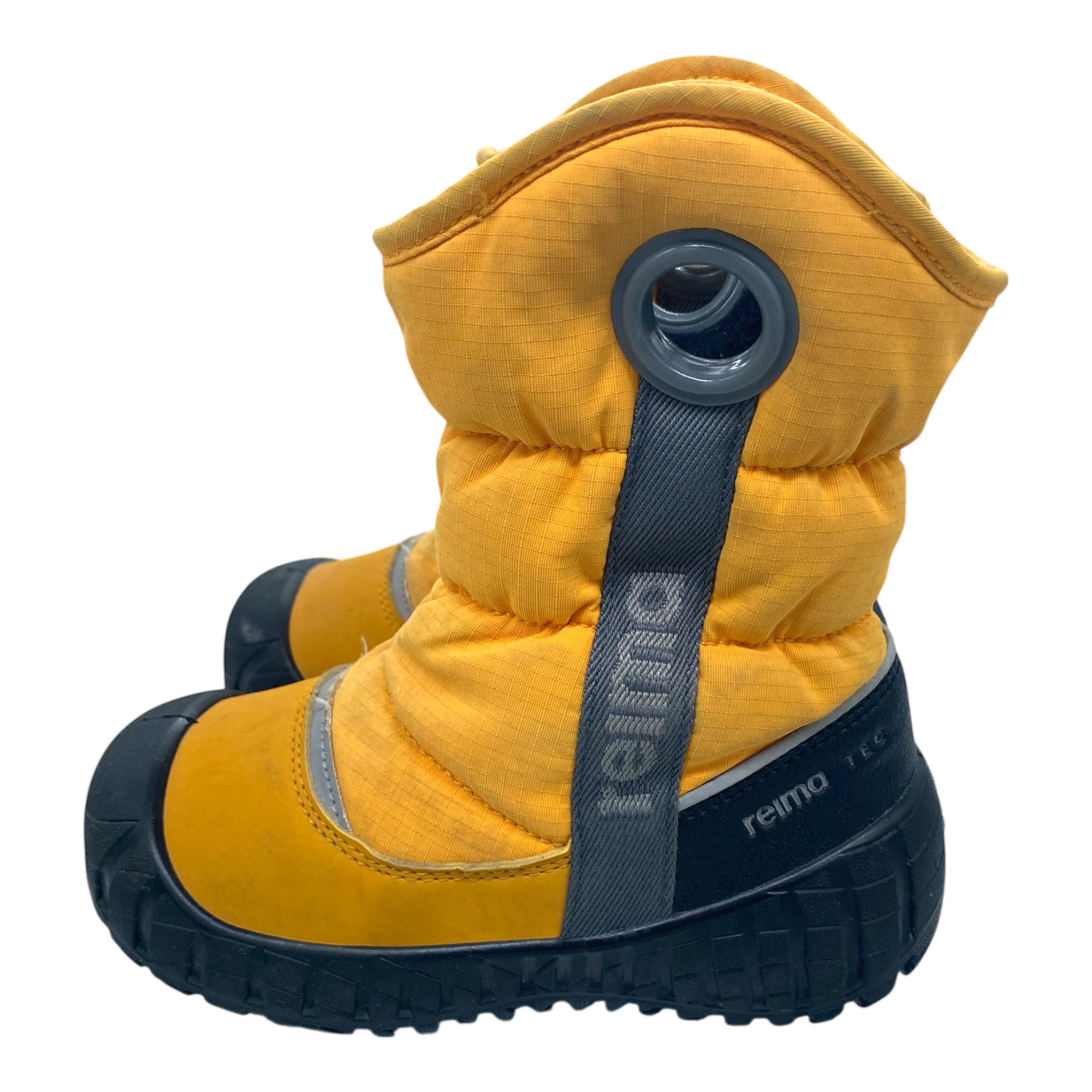 Reima Mega Mini winter boots with a warm 200 g wadding insulation and fleece lining. They're designed with reflective details for increased visibility. Boots are originally waterproof and have a seam-sealed lining with a waterproof membrane, ensuring playtime doesn't have to stop for wet weather.