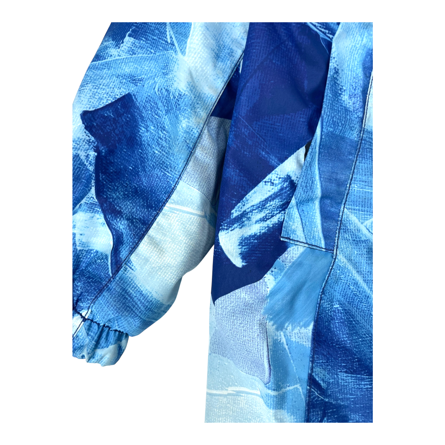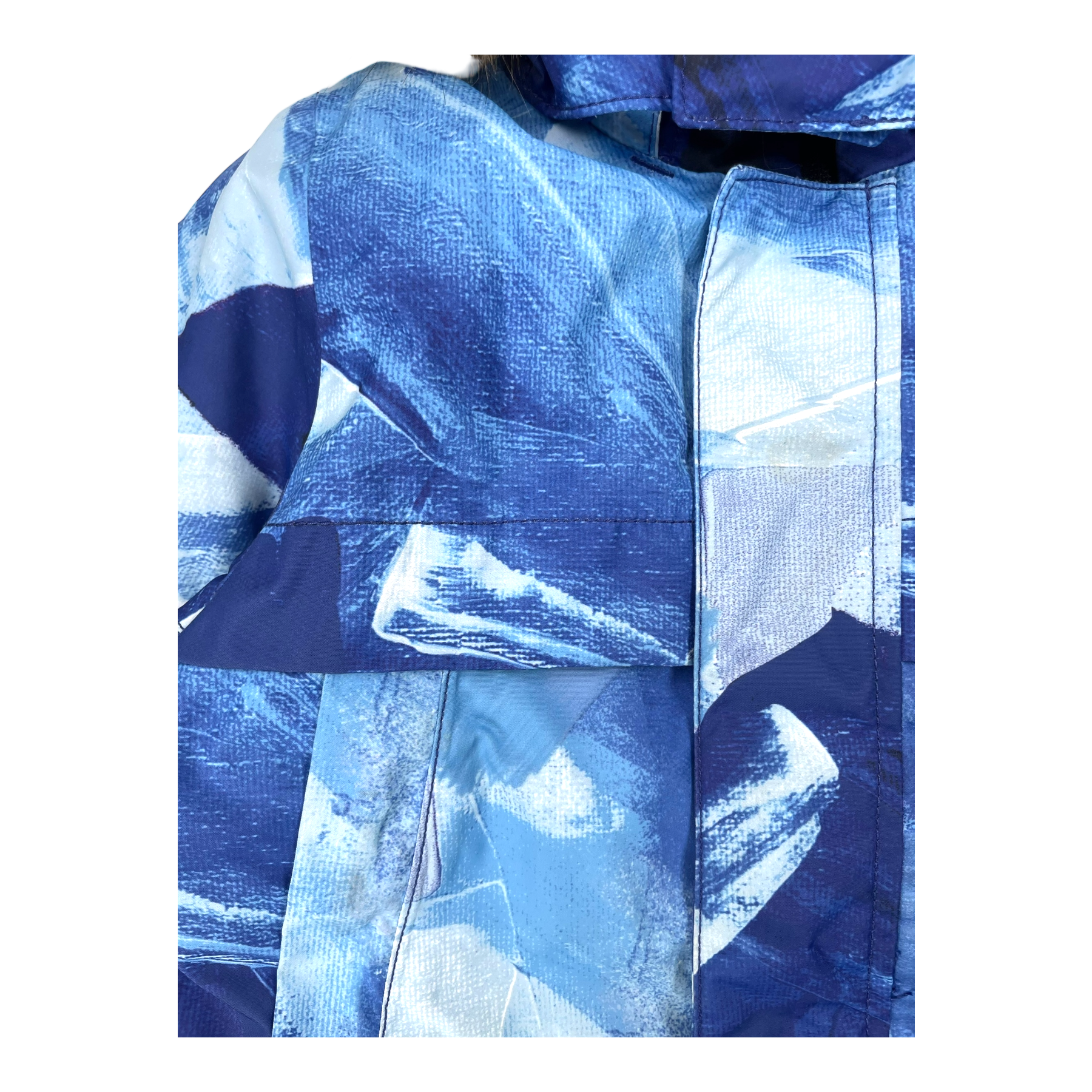 The jacket is in good condition, except for fading around the seam area and light stains.