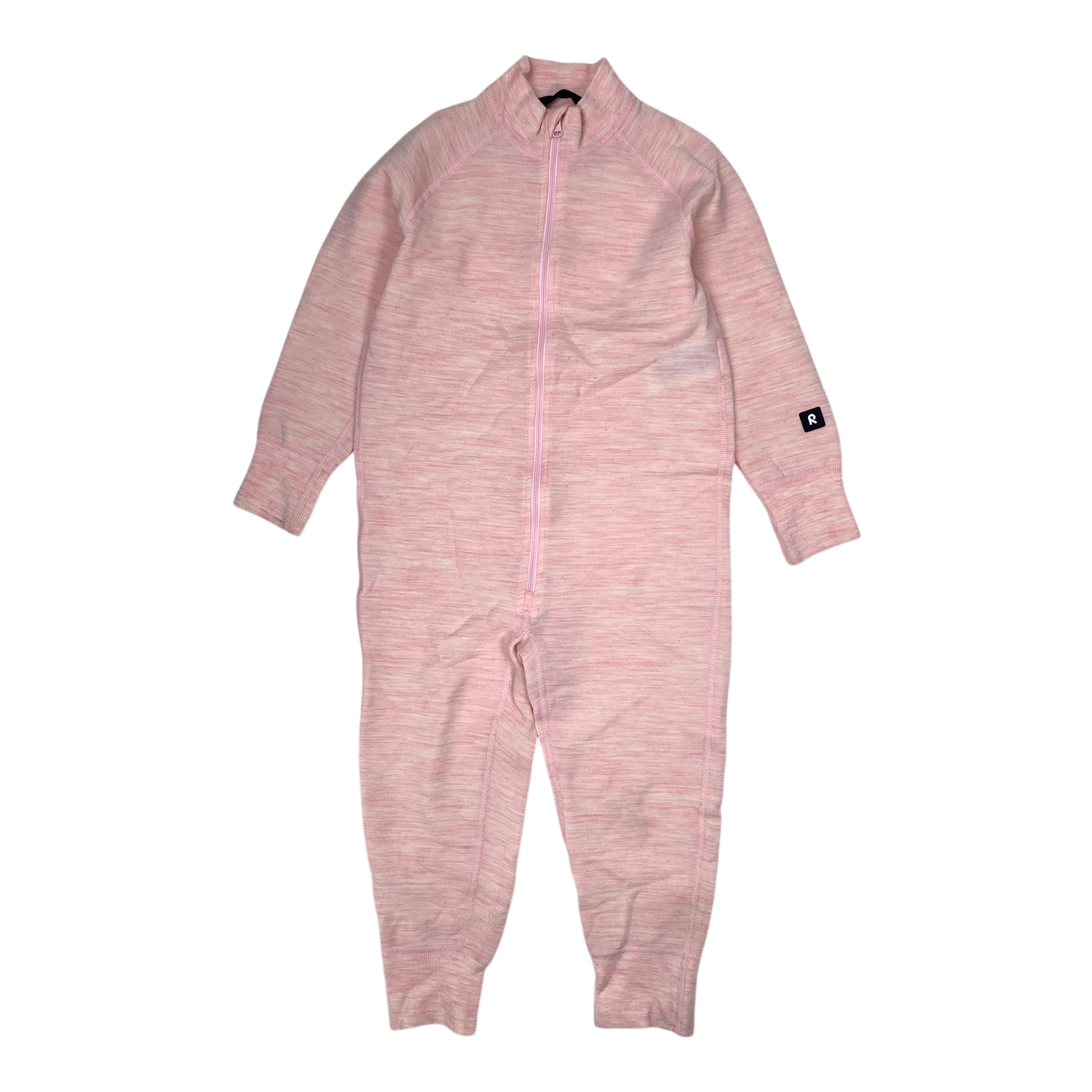 Reima Parvin wool jumpsuit is warm and breathable. It's great mid-layer underneath outerwear. Interior is brushed soft, so it feels super nice against skin. Ribbed cuffs, a full-length zipper that makes putting the piece on easy and a chin guard that protects delicate necks from the zip. For added comfort, all the seams have a thin, flat construction that doesn't chafe.