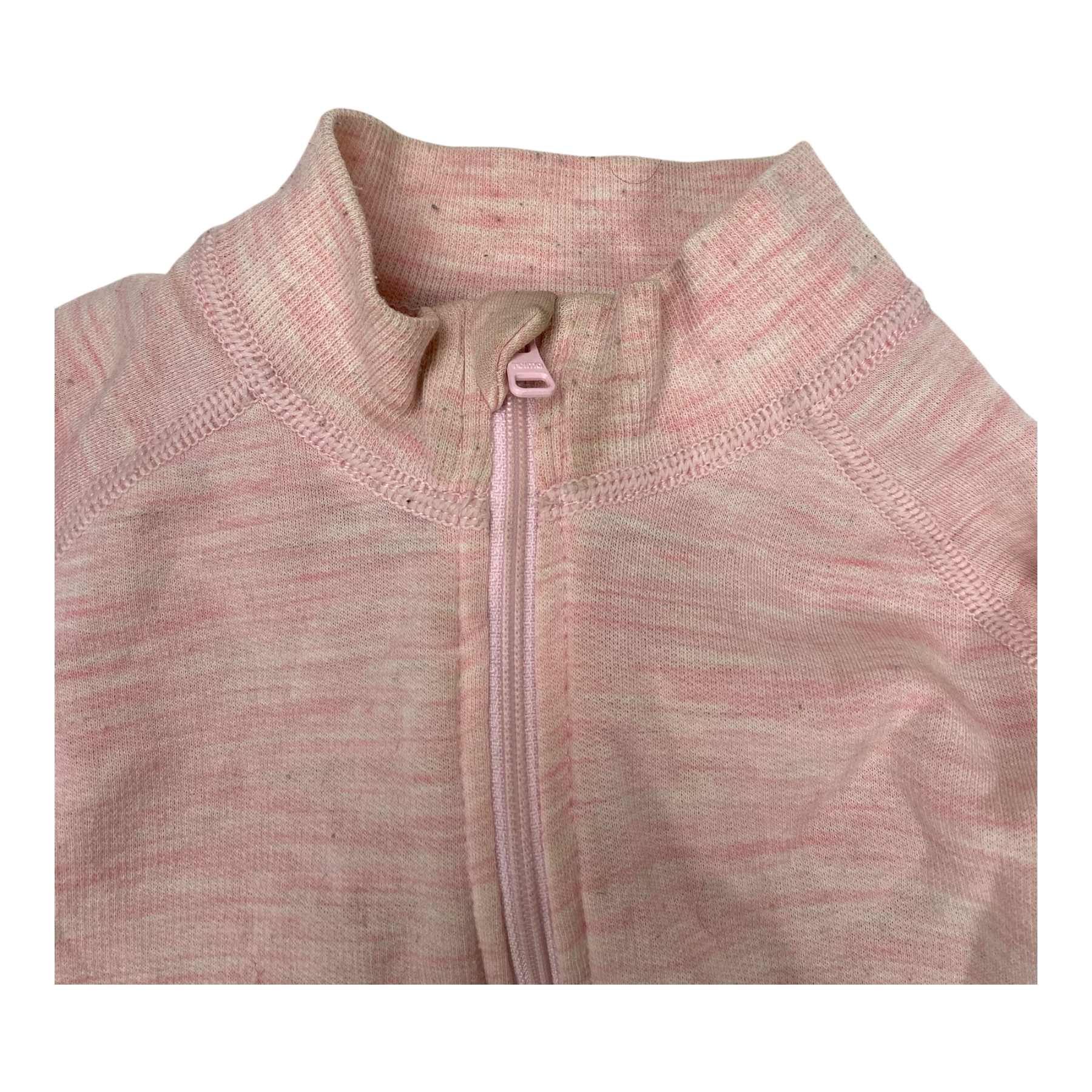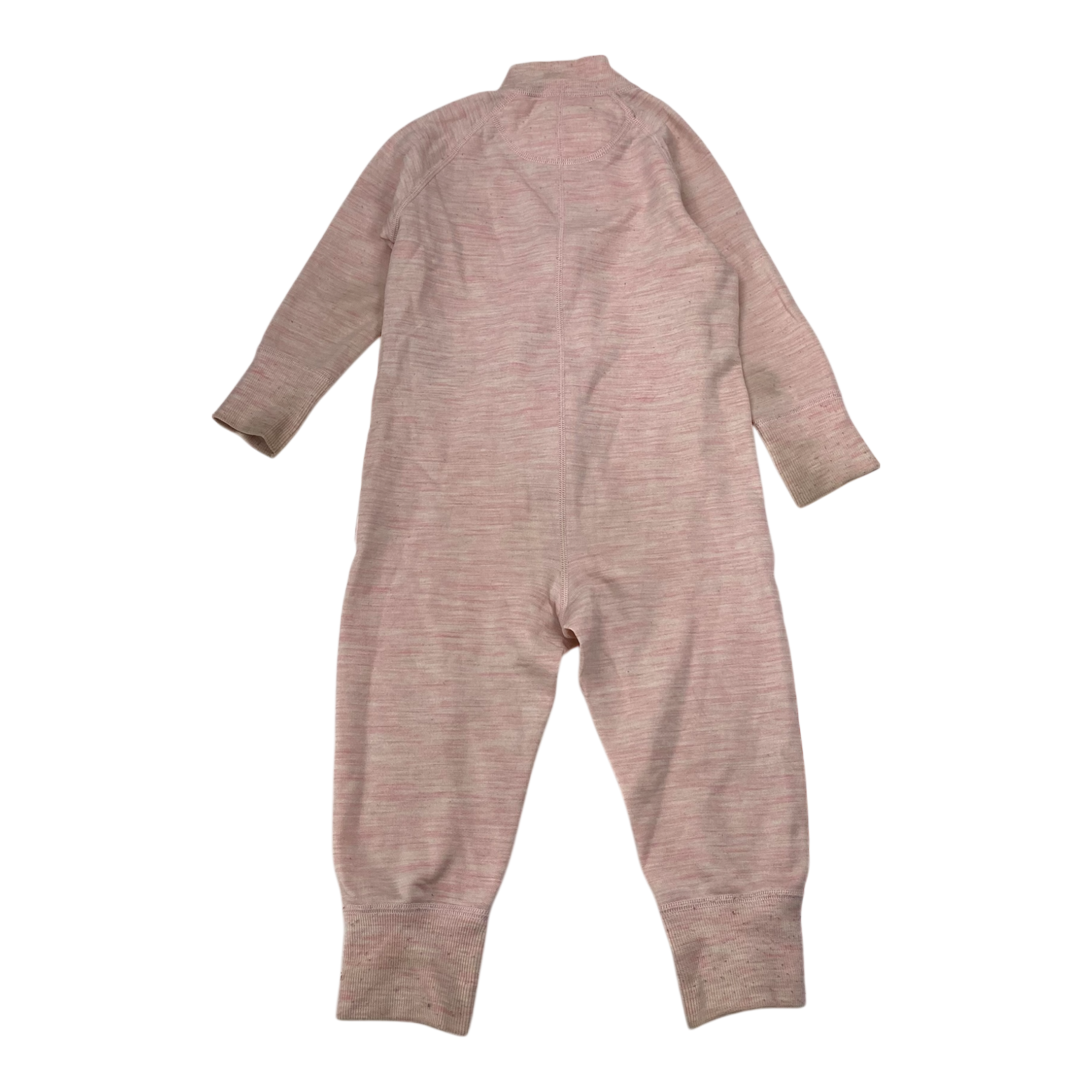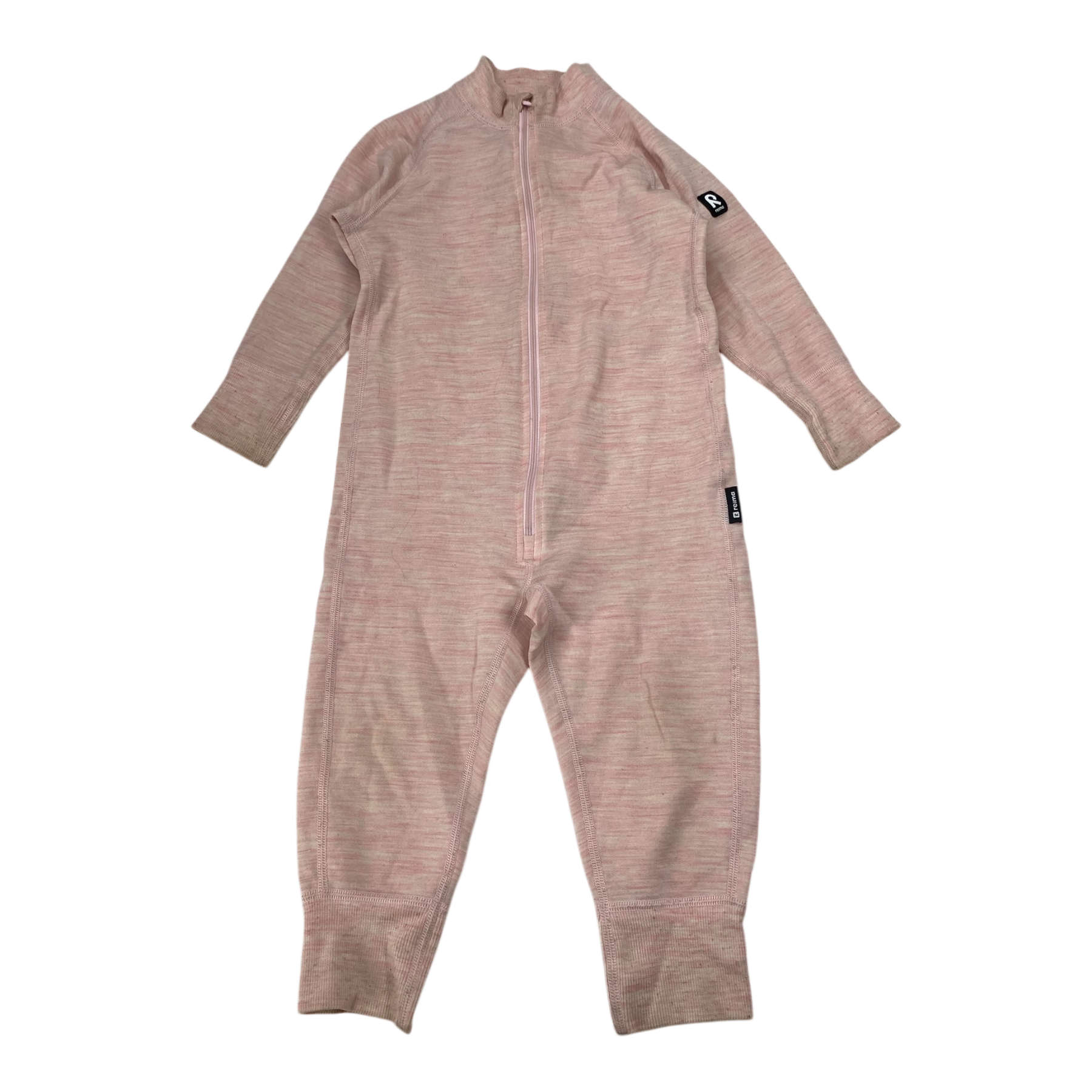 Reima Parvin wool jumpsuit is warm and breathable. It's great mid-layer underneath outerwear. Interior is brushed soft, so it feels super nice against skin. Ribbed cuffs, a full-length zipper that makes putting the piece on easy and a chin guard that protects delicate necks from the zip. For added comfort, all the seams have a thin, flat construction that doesn't chafe. The item has some staining.