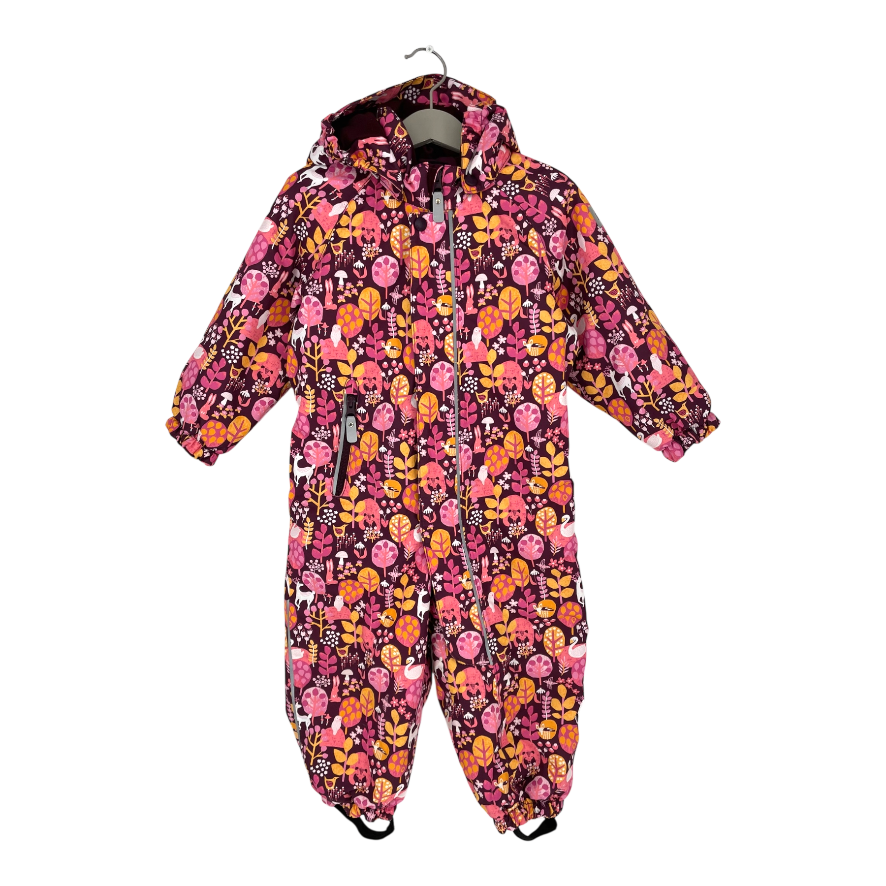 Reima Puhuri toddlers winter overall is originally waterproof. All seams are sealed to keep water out. Durable material has excellent water and dirt repellence with fluorocarbon-free water and dirt repellent finish BIONIC-FINISH®ECO.