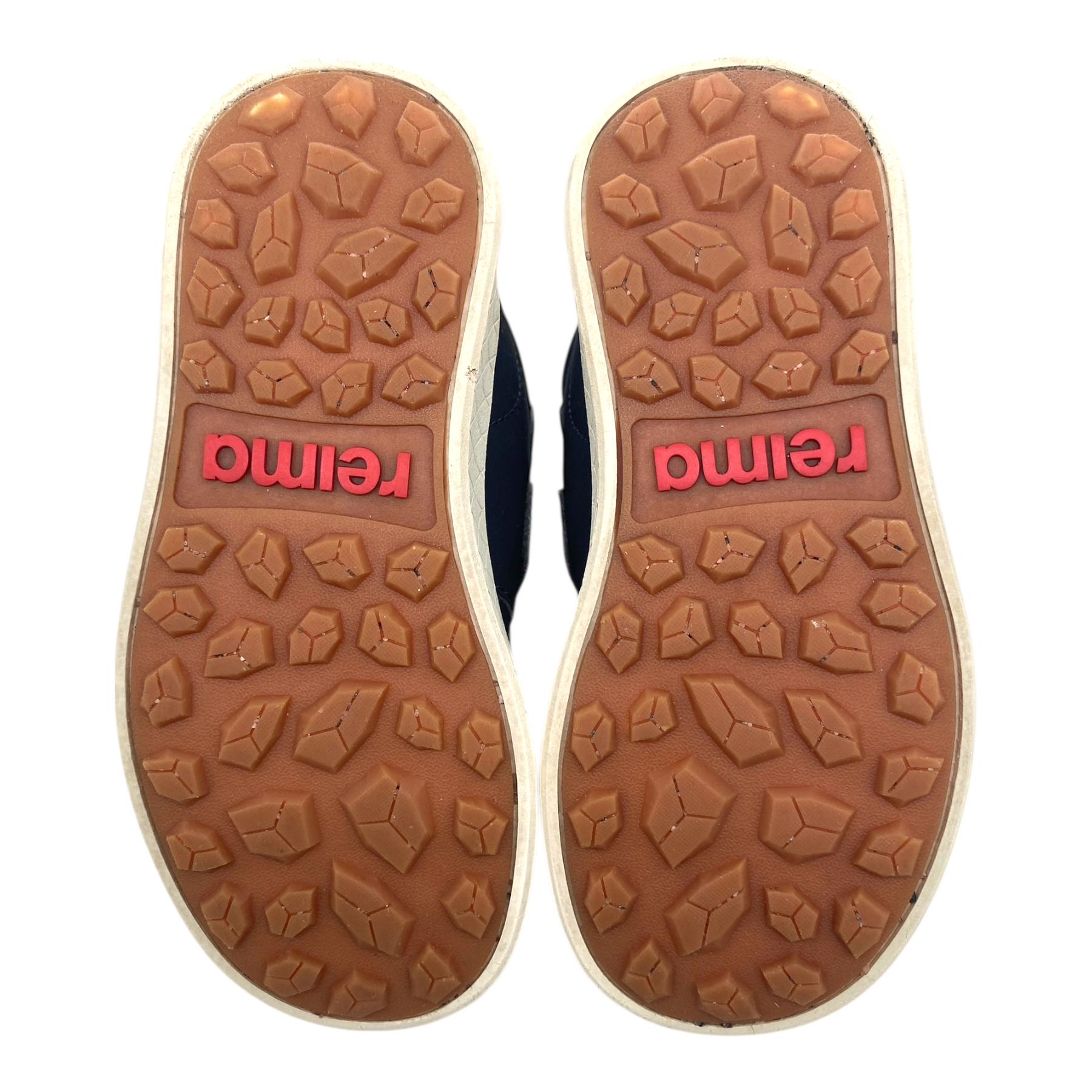 Reima Pyrytys shoes are originally waterproof. Tested for comfort in temperatures down to -20 °C, they’re a wardrobe essential for cold winters. The flexible rubber outsoles gives a proper grip on surfaces. Textile fur lining keeps little feet warm while two hook-and-loop straps ensure a snug and comfy fit. Seam-sealed inserts offer extra protection by preventing rain and slush from seeping in. The boots are 100% vegan and PFAS free and come with removable felt insoles. Reflective details deliver visibility.