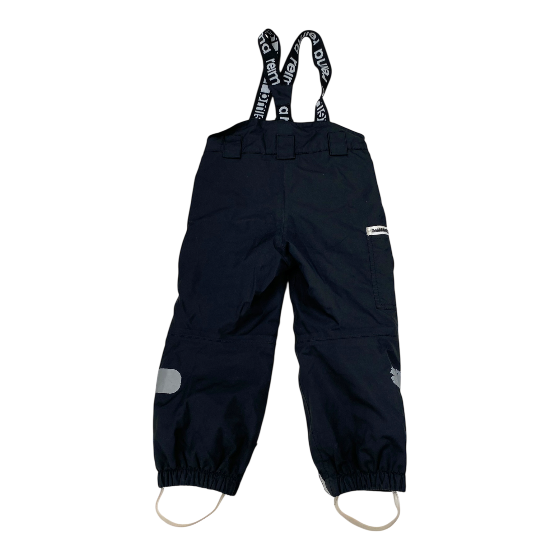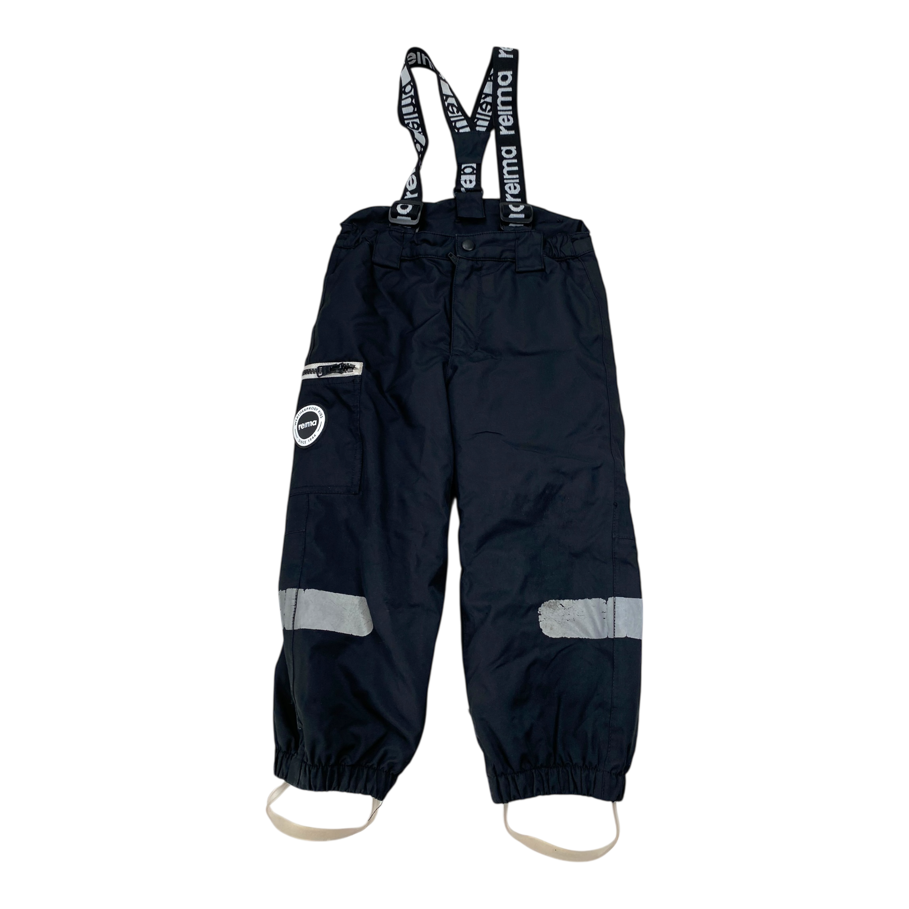 Reima Tiksi lightly insulated winter pants in black. This style to suits equally boys and girls alike. On dark autumn and winter evenings, your kid will shine thanks to the large reflecting prints. The suspenders help keep the pants up.