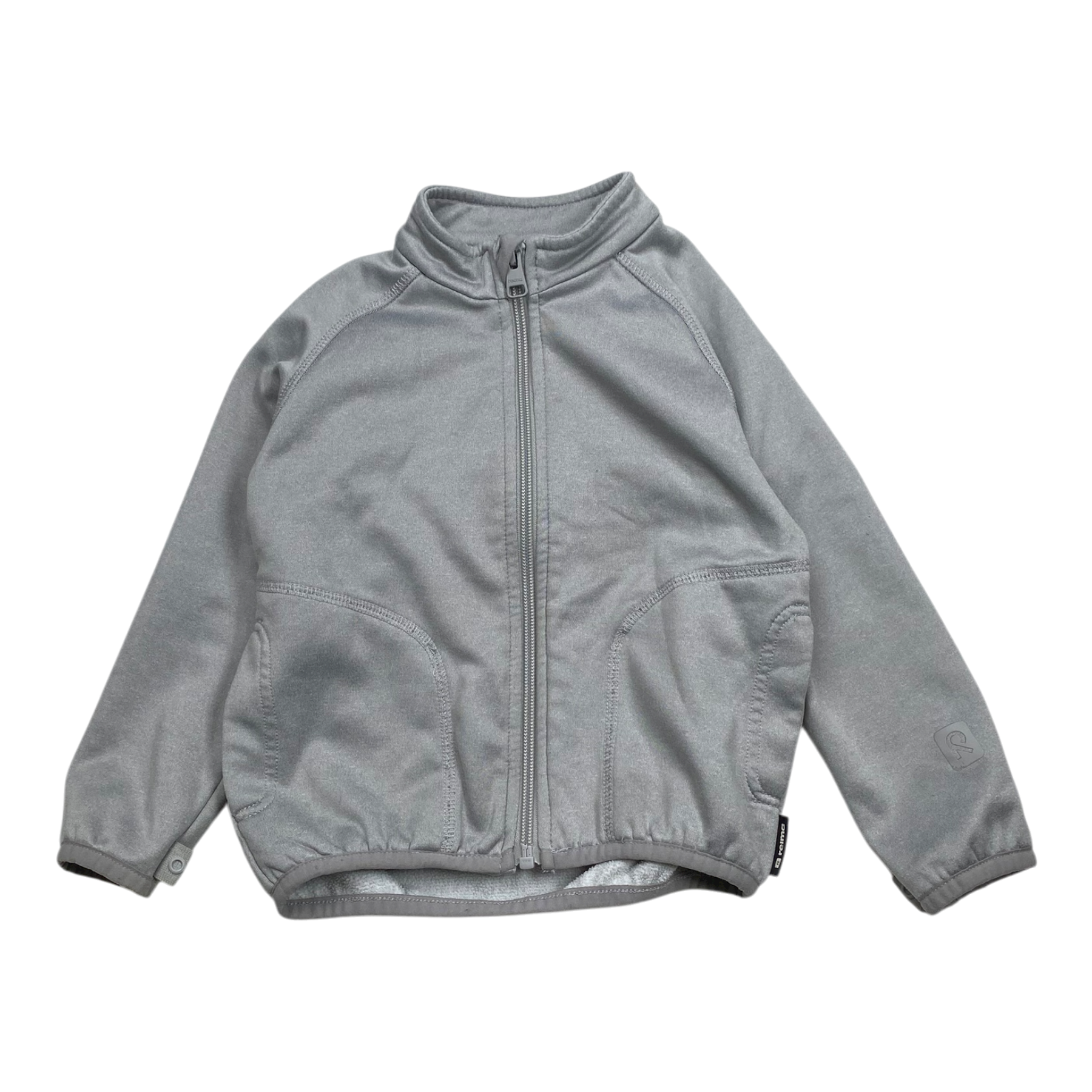 Reima Toimiva zip sweatshirt with zipper closure and two open pockets. The material has slightly fluffed in use.