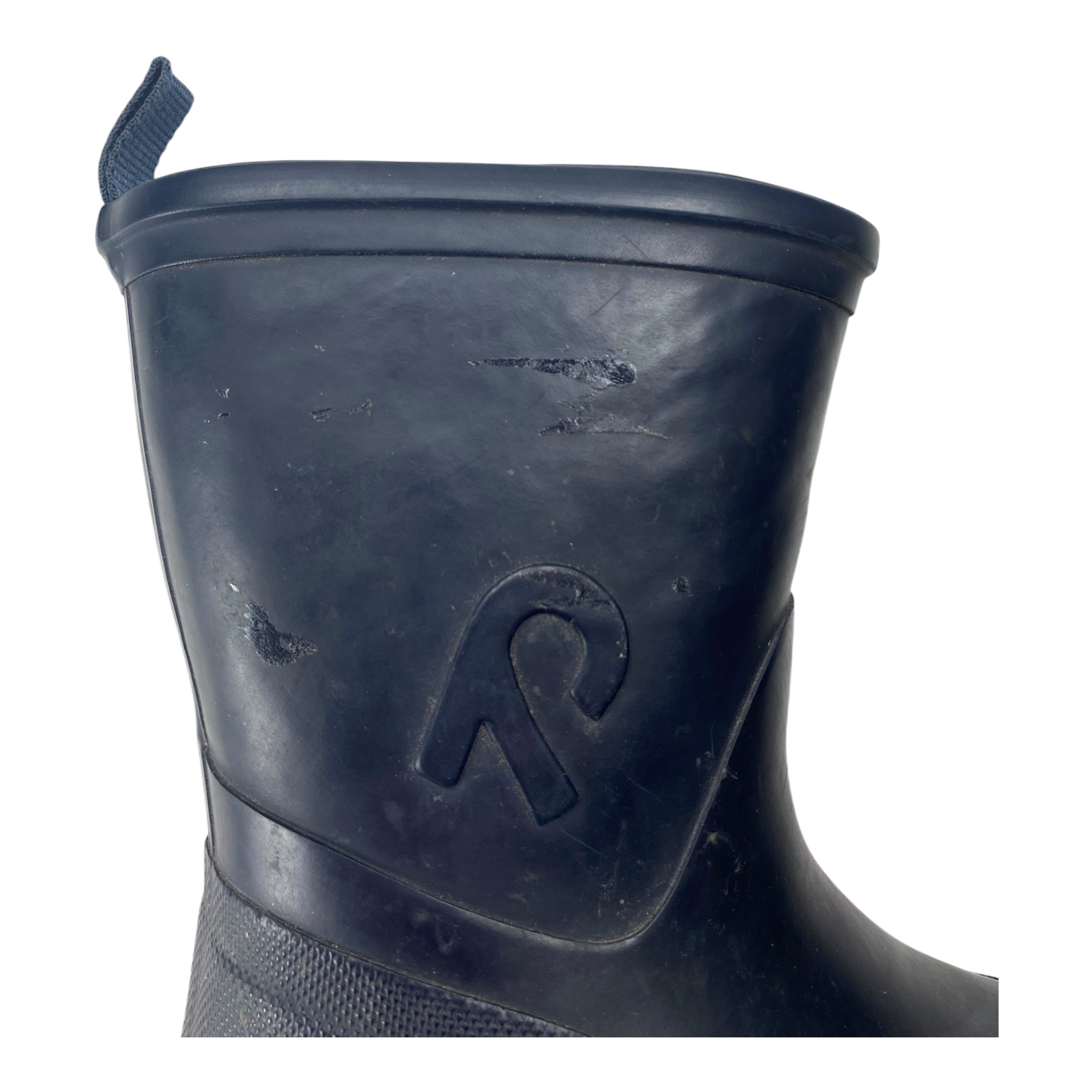 Reima winter rain boots are waterproof with extra warm fleece lining. They are super easy to pull on and keeps your feet warm and dry. The item has some signs of use and a tape mark as seen in the last picture.