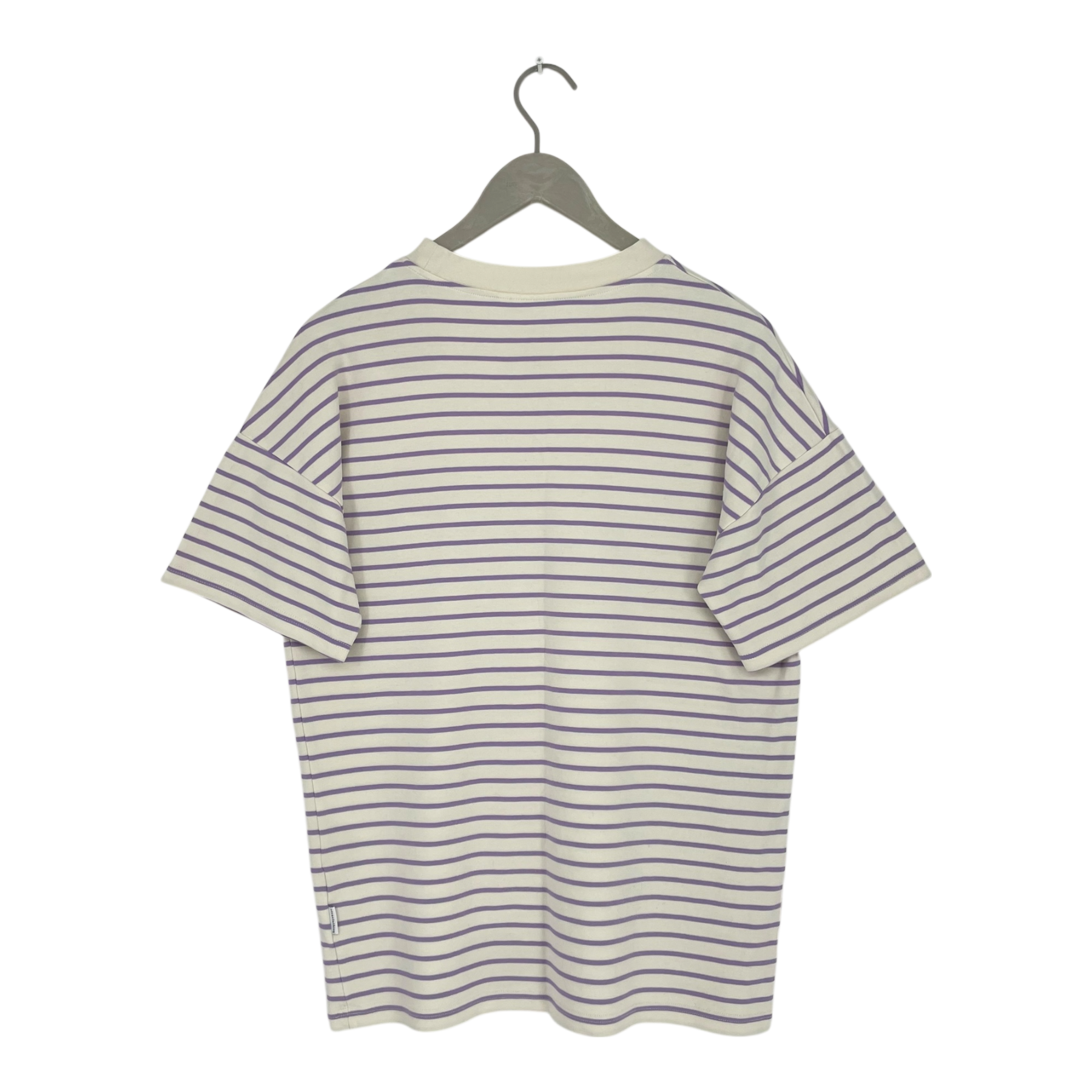 Riva Clothing basic striped t-shirt in white with lavender stripes.