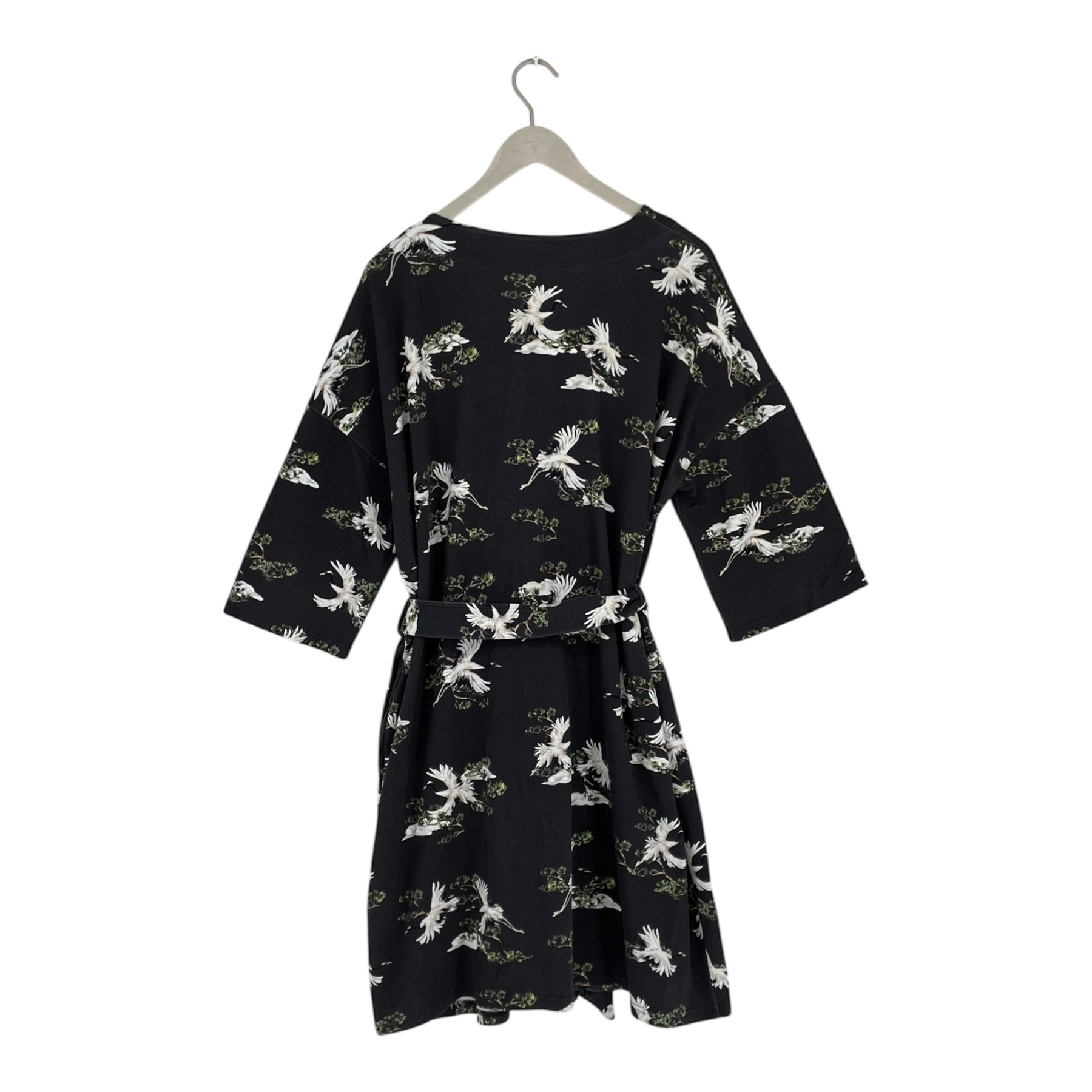 Riva Clothing black wrap style kimono with a belt in Hokkaido print.