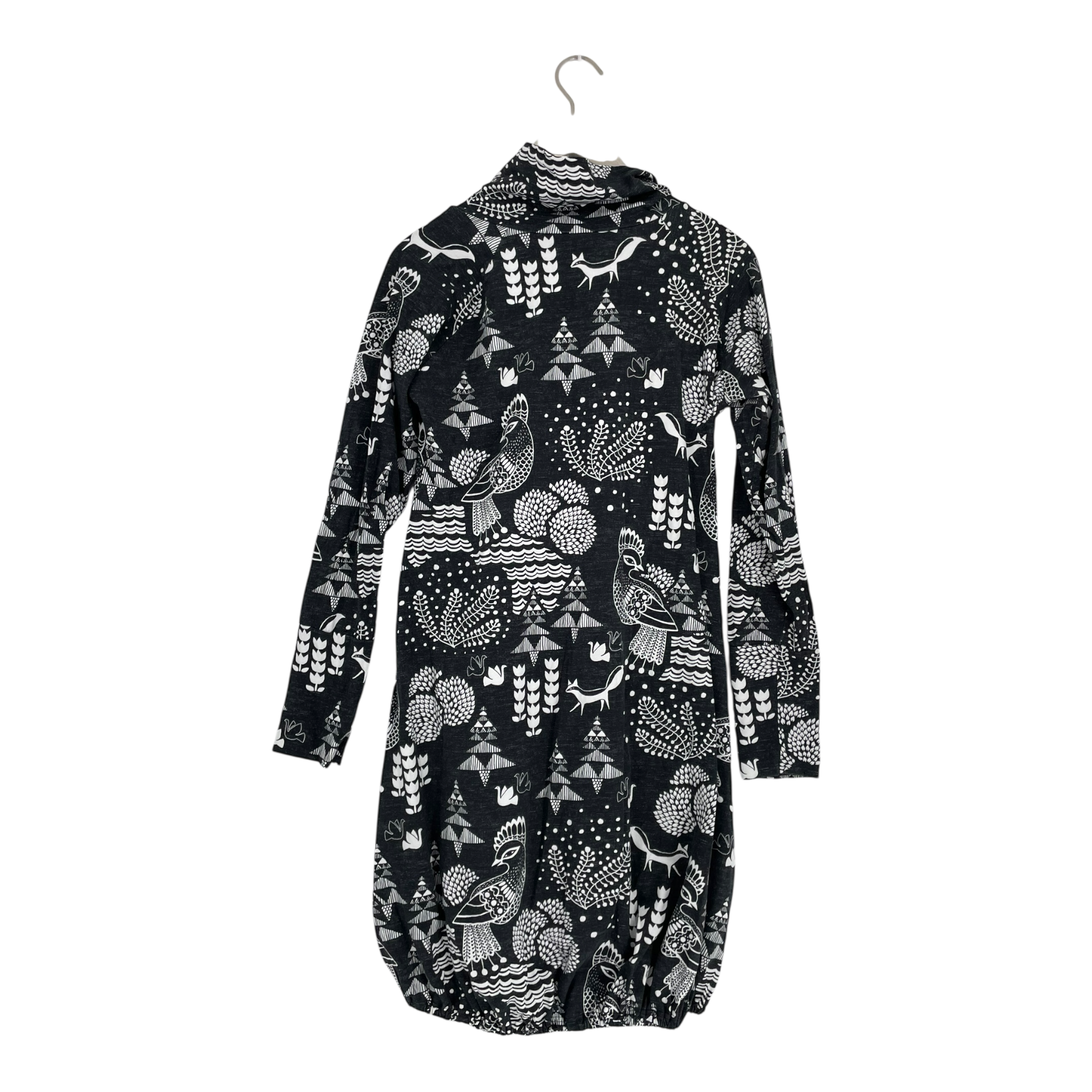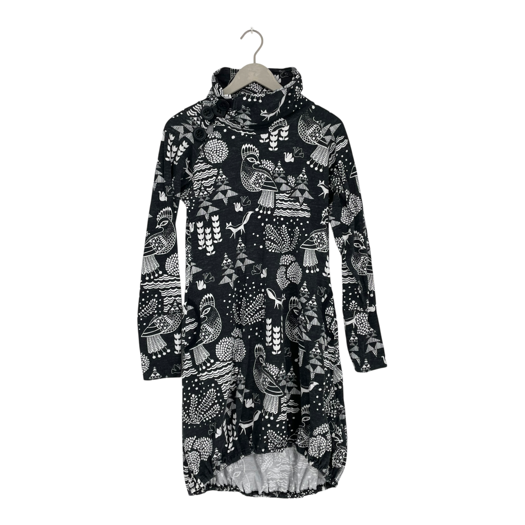 Taimi tunic with two side pockets and an elasticated hemline. High neck with buttons.