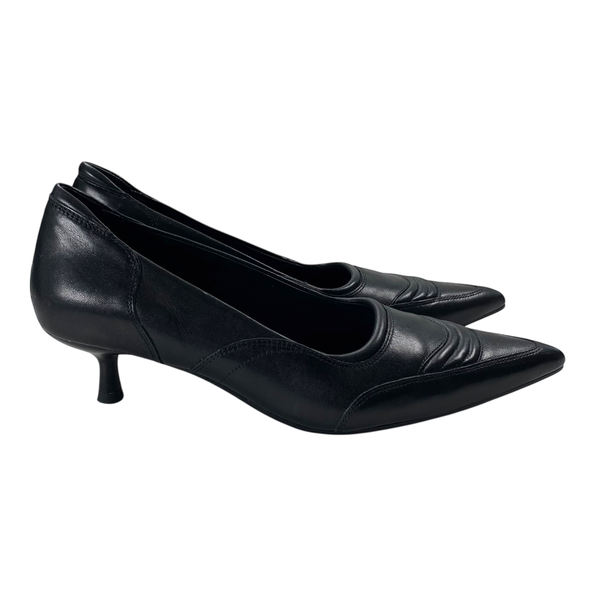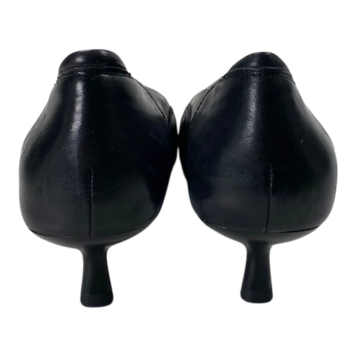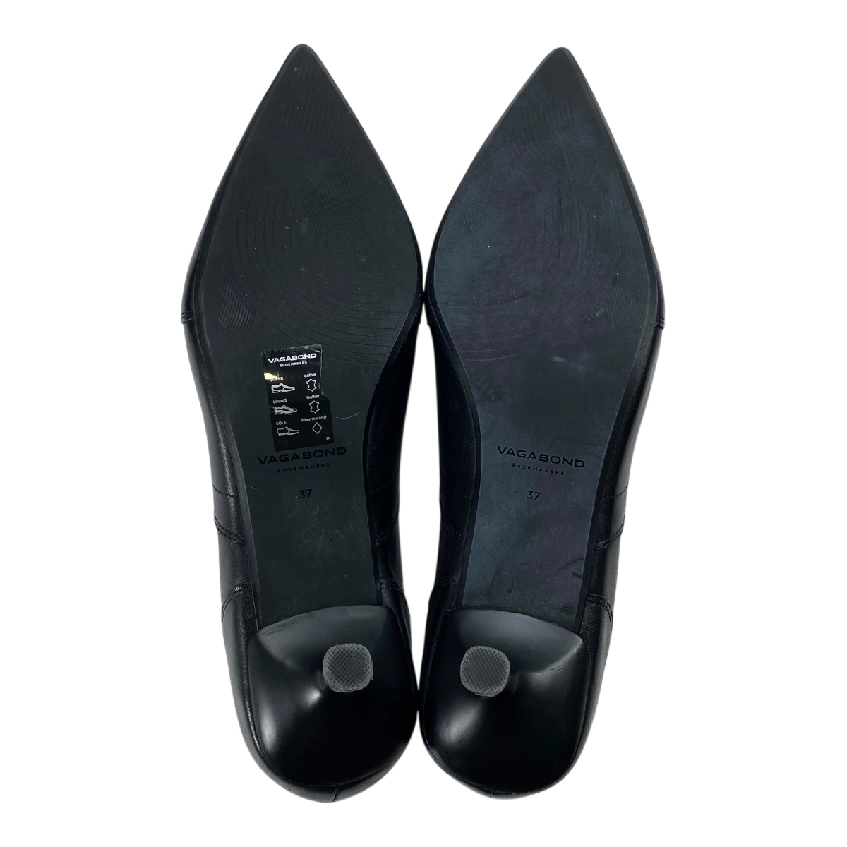 Vagabond Lykke pumps with a statement look. The style is crafted from black leather featuring moto-inspired details, a pointed-toe shape and leather insoles. The sculpted kitten heel measures 47mm.